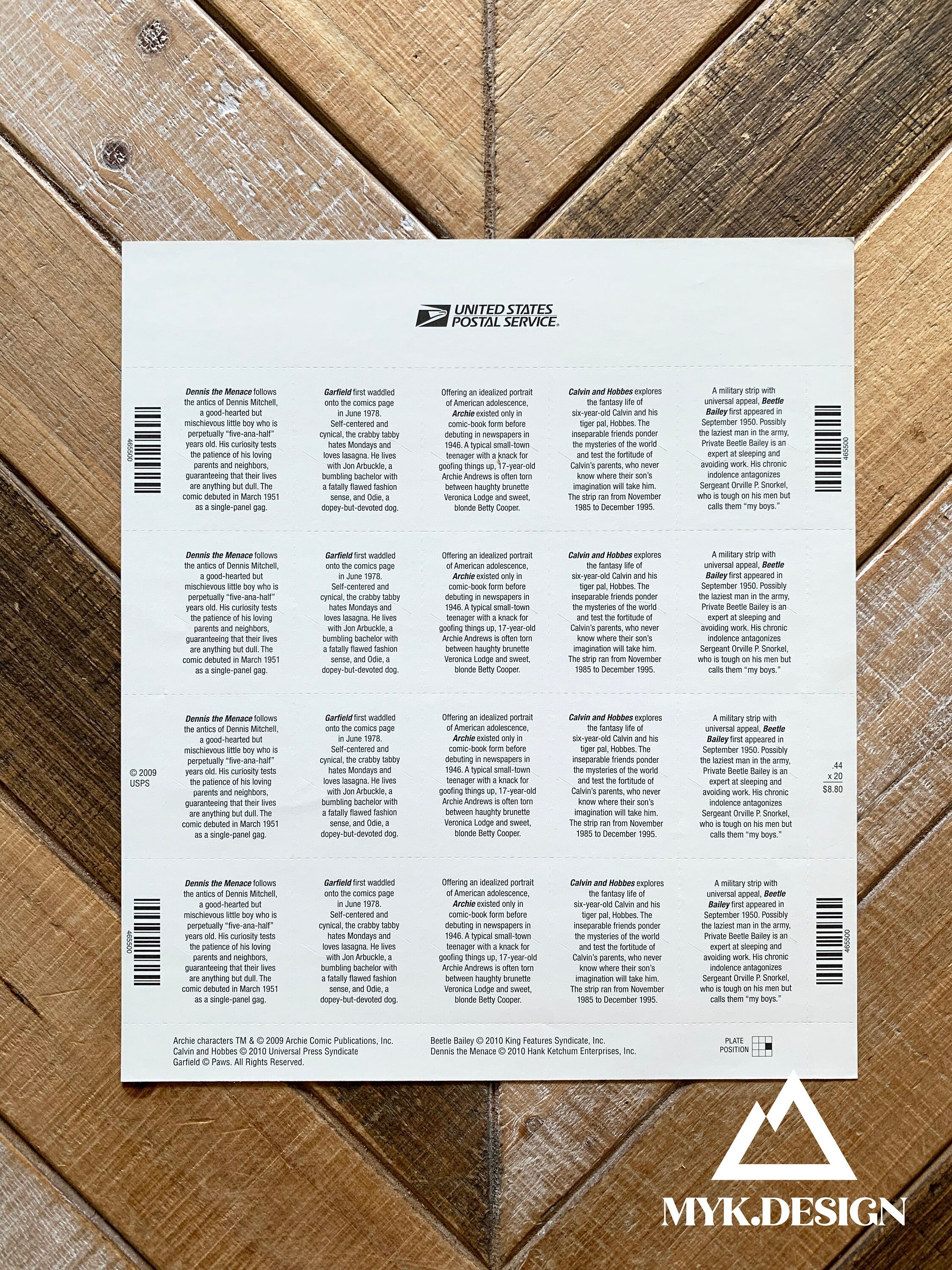 Sunday Funnies | Sheet of 20 U.S. Postage Stamps | Face Value 44 Cents | 2010 | Scott 4467-4471