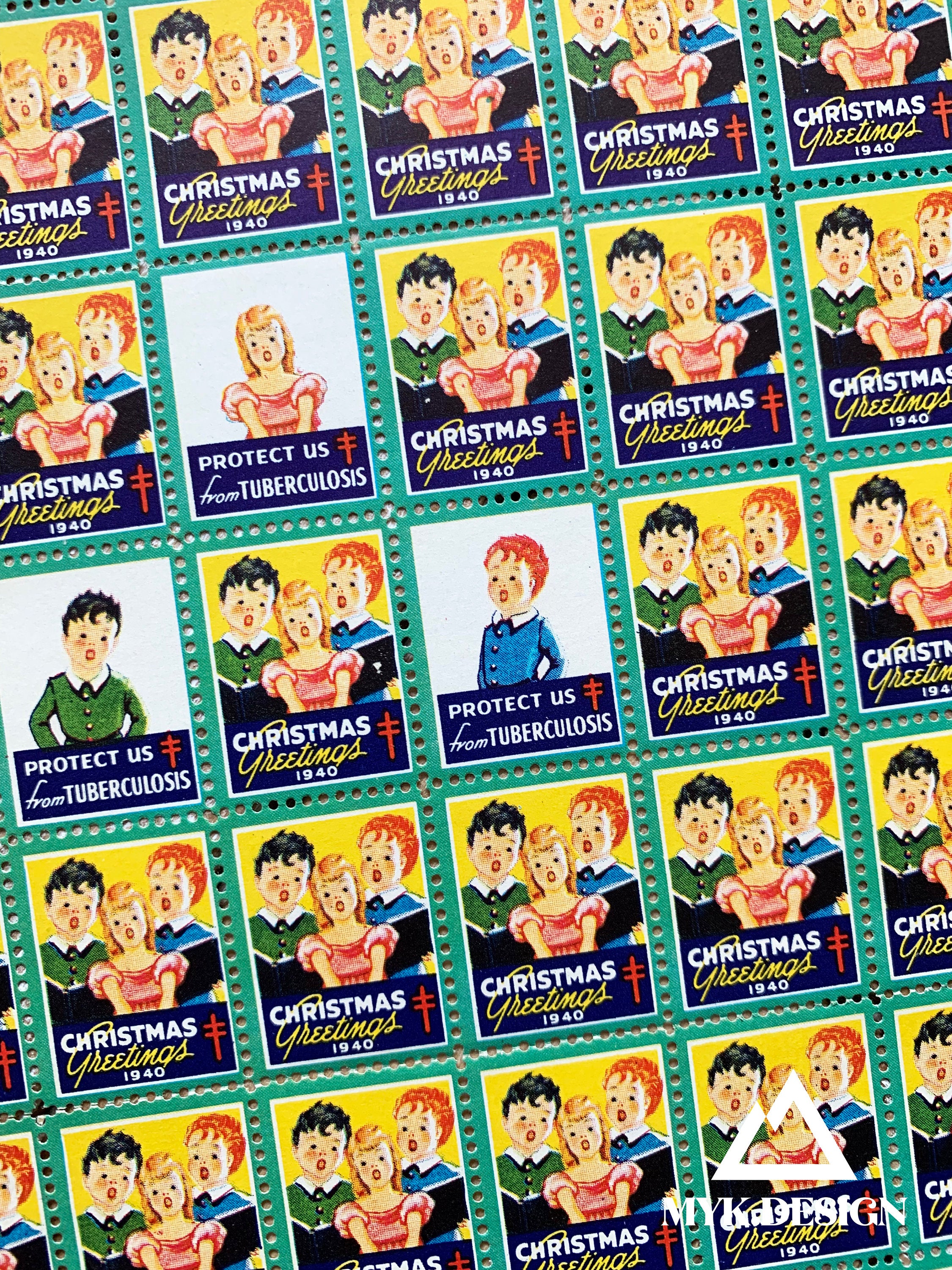 First issued in 1907, Christmas seals were championed by Emily Bissel with the help of the National Association for the Study and Prevention of Tuberculosis (NASPT) and the American Red Cross. They were initially printed and sold to raise money to fight tuberculosis. Now printed by the American Lung Association (which the NASPT became in 1973), the seals are still sold today to raise money for respiratory illnesses.