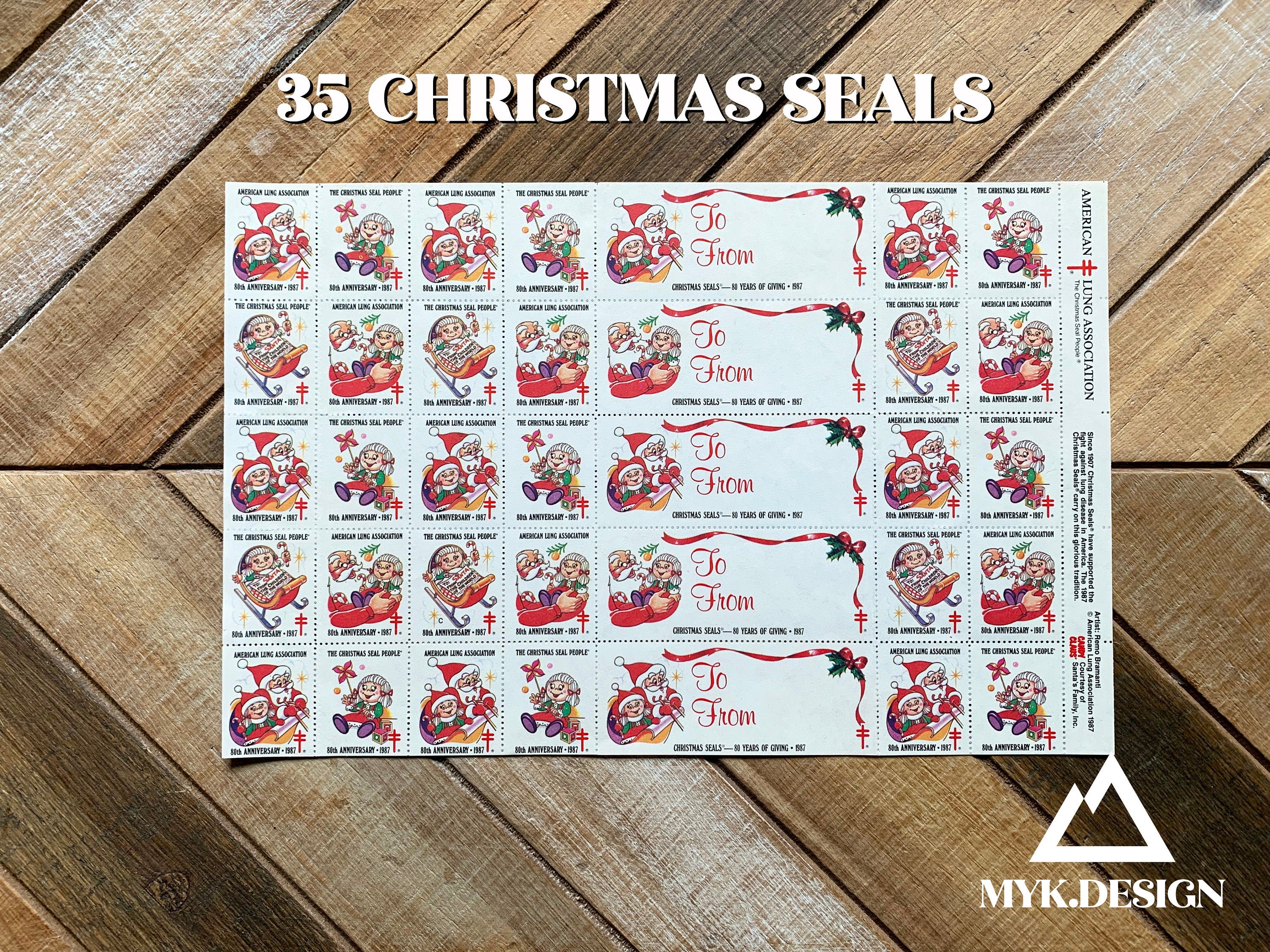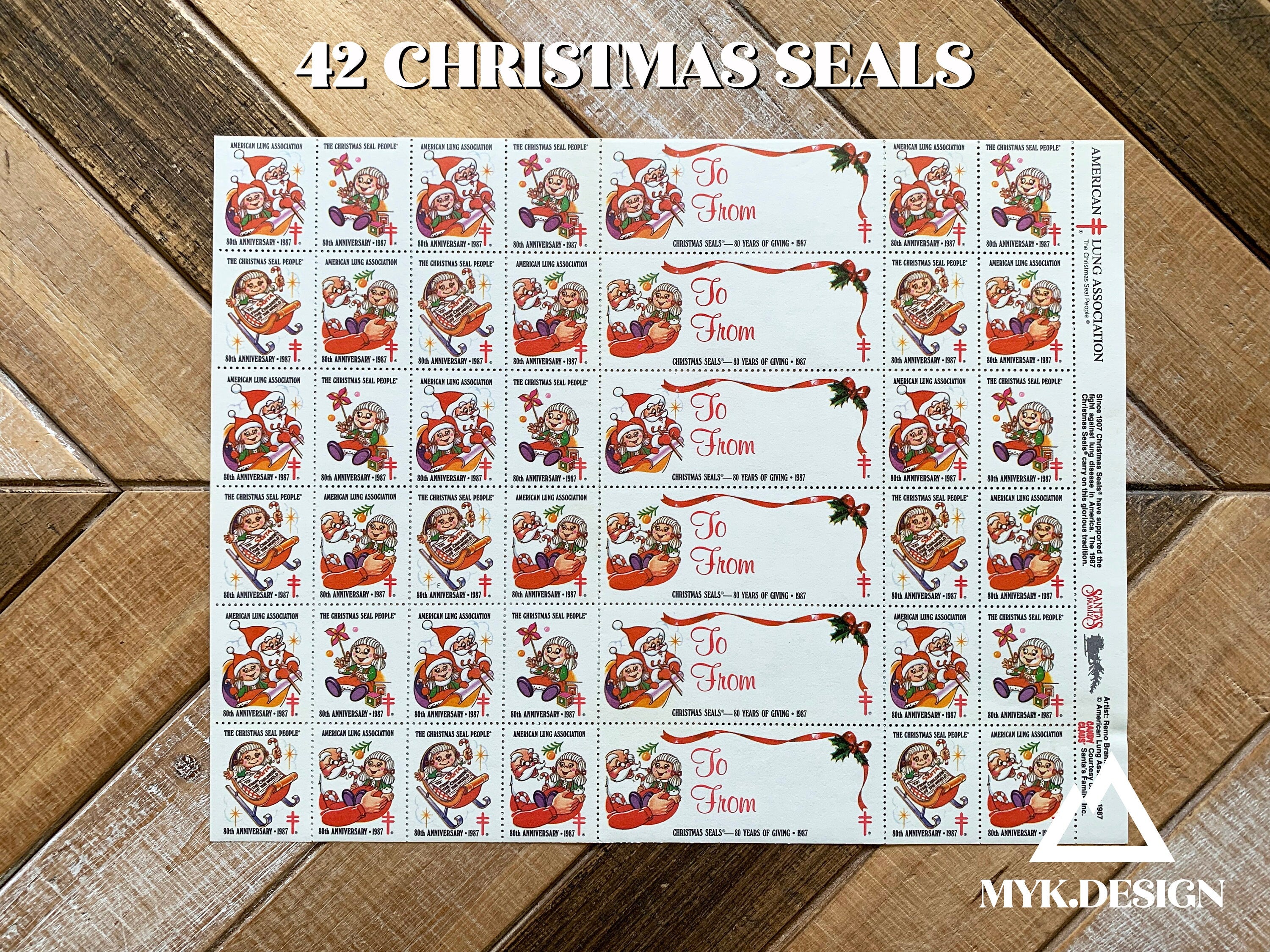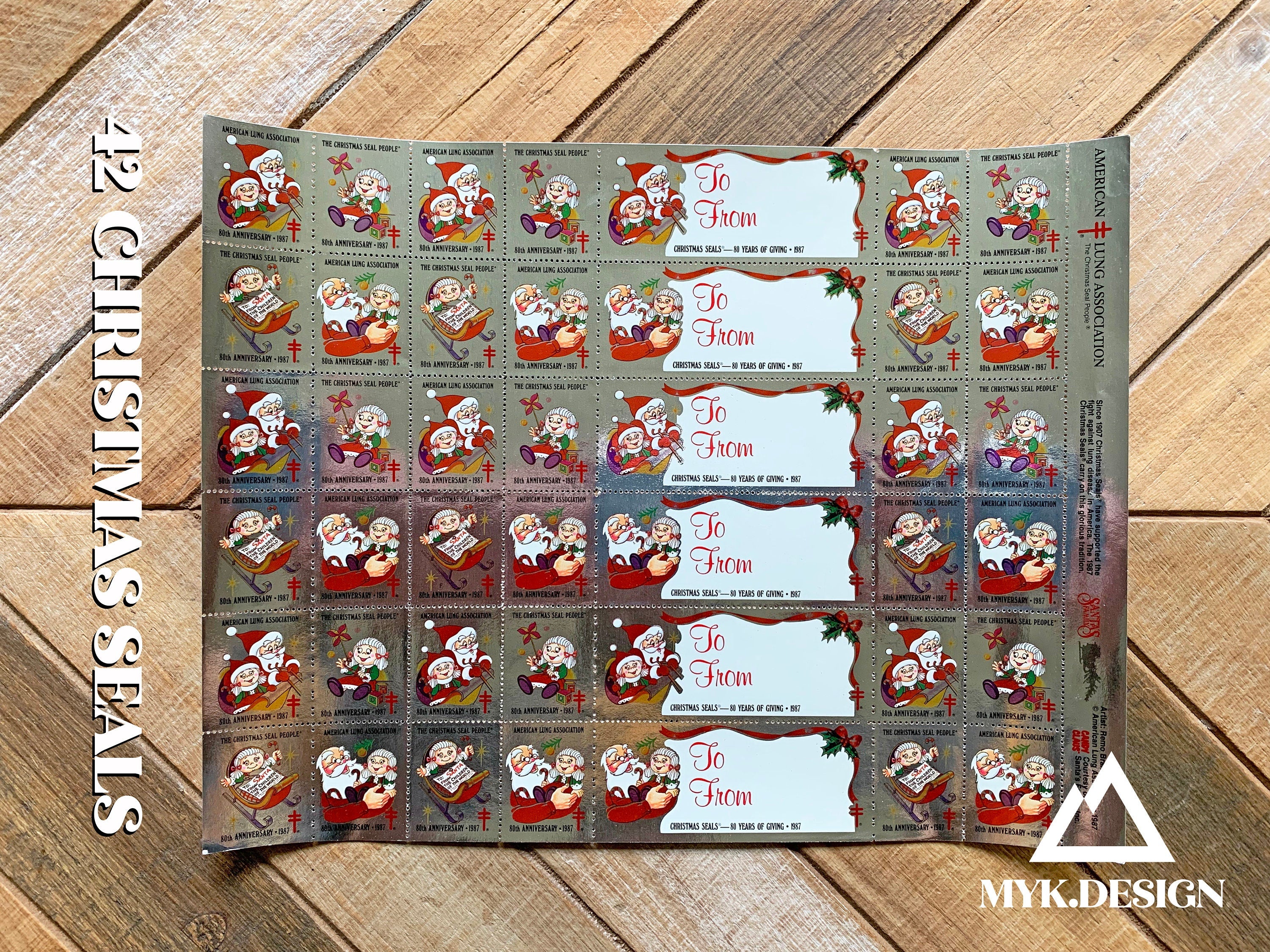Christmas seals have no postage value, but have adorned Christmas and holiday mail for over a century. Add a touch of history and bright color to your mail with these seals featuring winter images. Seals can occupy any position on your holiday envelope.