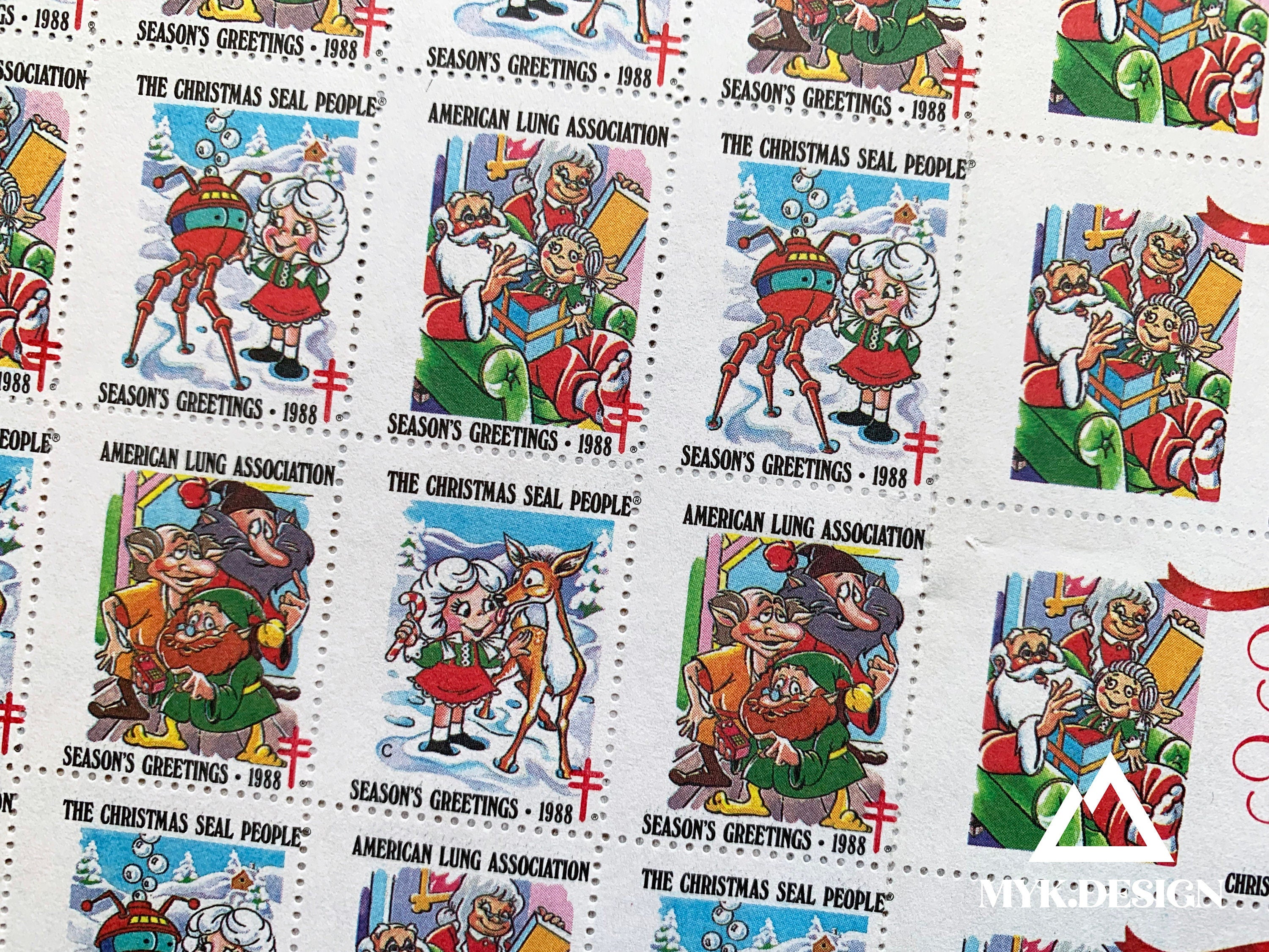 First issued in 1907, Christmas seals were championed by Emily Bissel with the help of the National Association for the Study and Prevention of Tuberculosis (NASPT) and the American Red Cross. They were initially printed and sold to raise money to fight tuberculosis. Now printed by the American Lung Association (which the NASPT became in 1973), the seals are still sold today to raise money for respiratory illnesses.