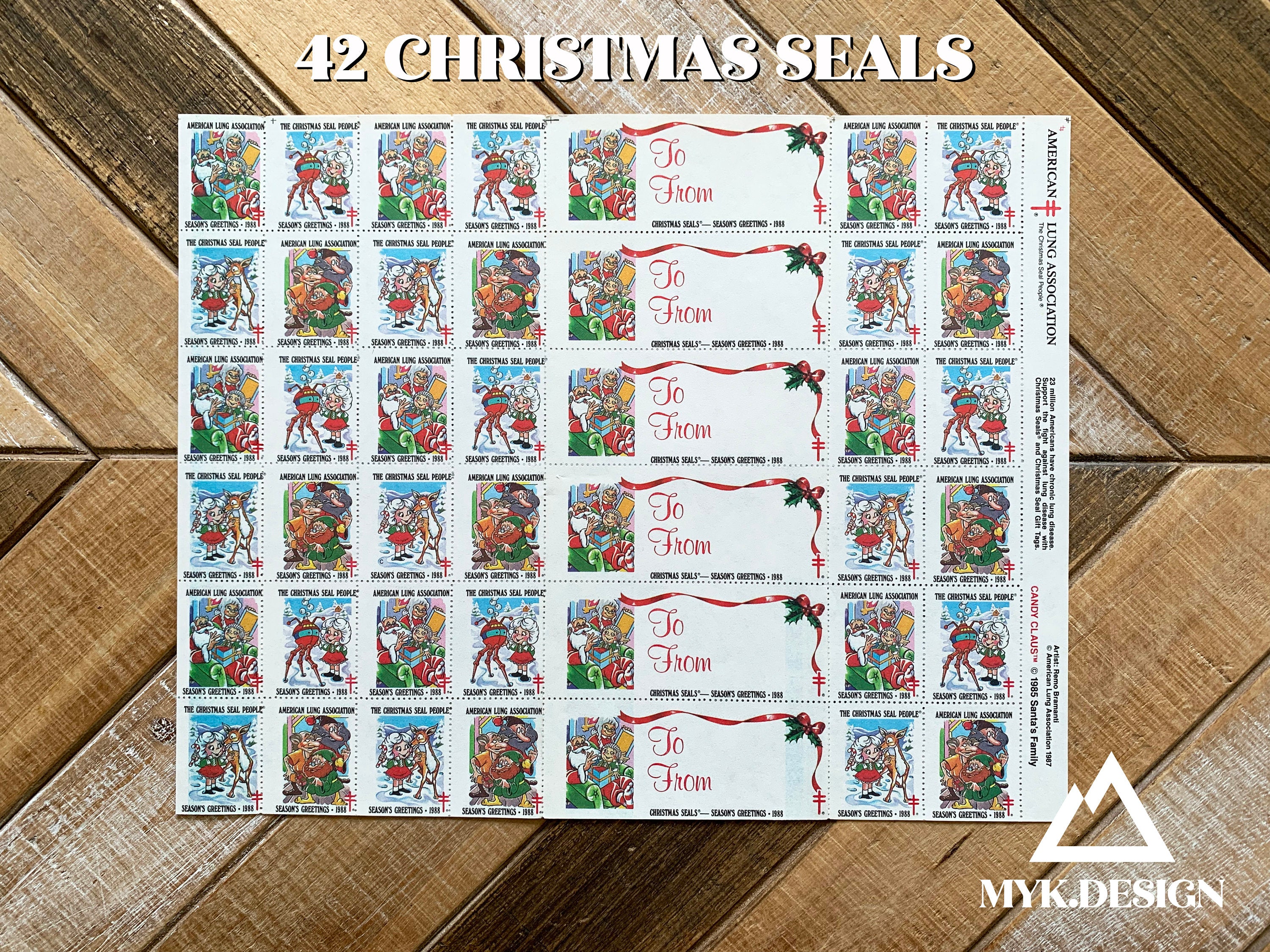 Christmas seals have no postage value, but have adorned Christmas and holiday mail for over a century. Add a touch of history and bright color to your mail with these seals featuring winter images. Seals can occupy any position on your holiday envelope.