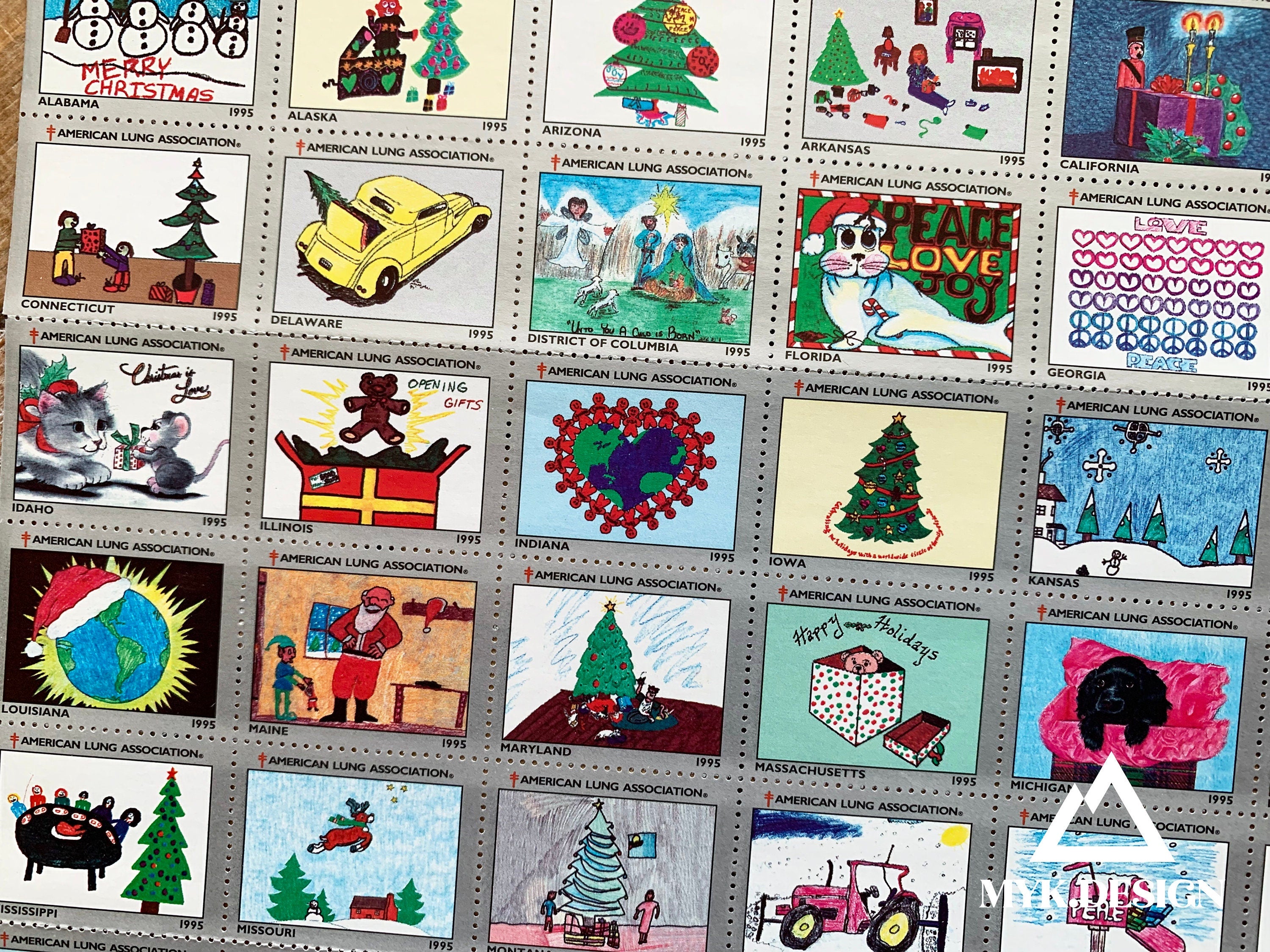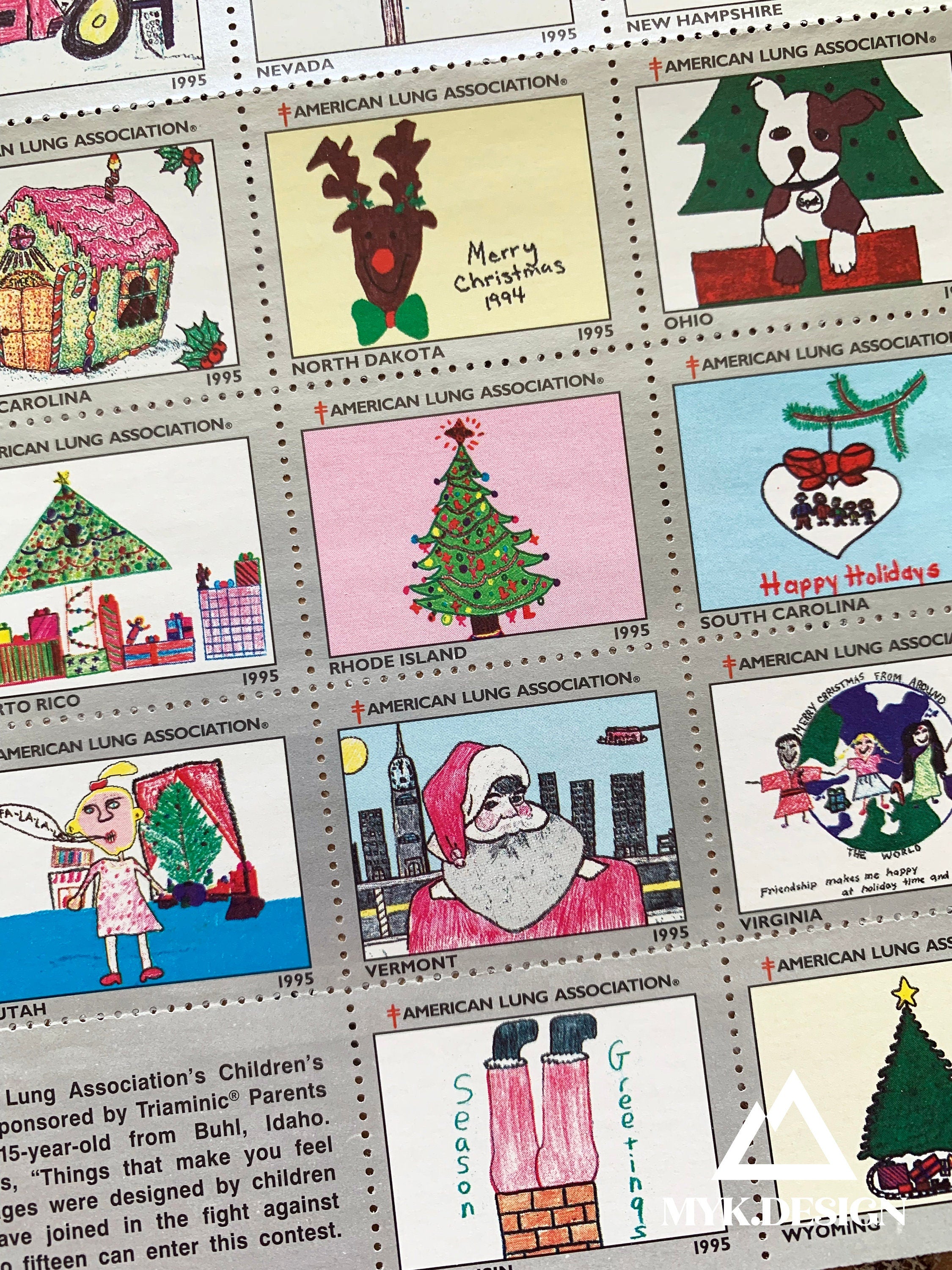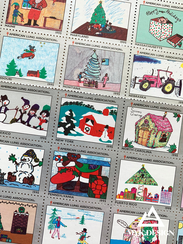 1995 Christmas Seals: Children’s Art | Scott WX322 | American Red Cross, Holiday Greetings, Lung Association