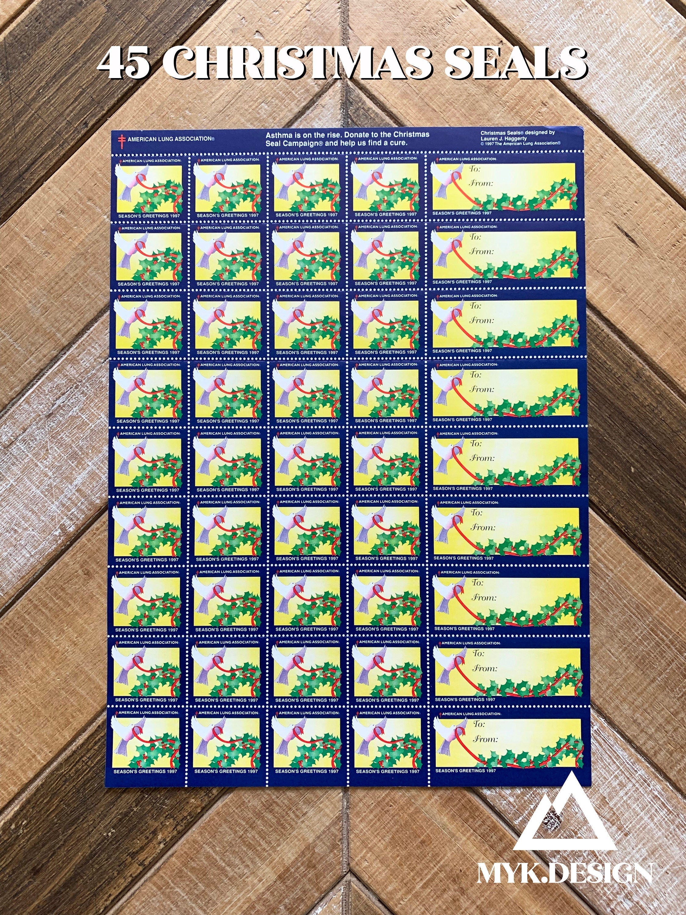 Christmas seals have no postage value, but have adorned Christmas and holiday mail for over a century. Add a touch of history and bright color to your mail with these seals featuring winter images. Seals can occupy any position on your holiday envelope.