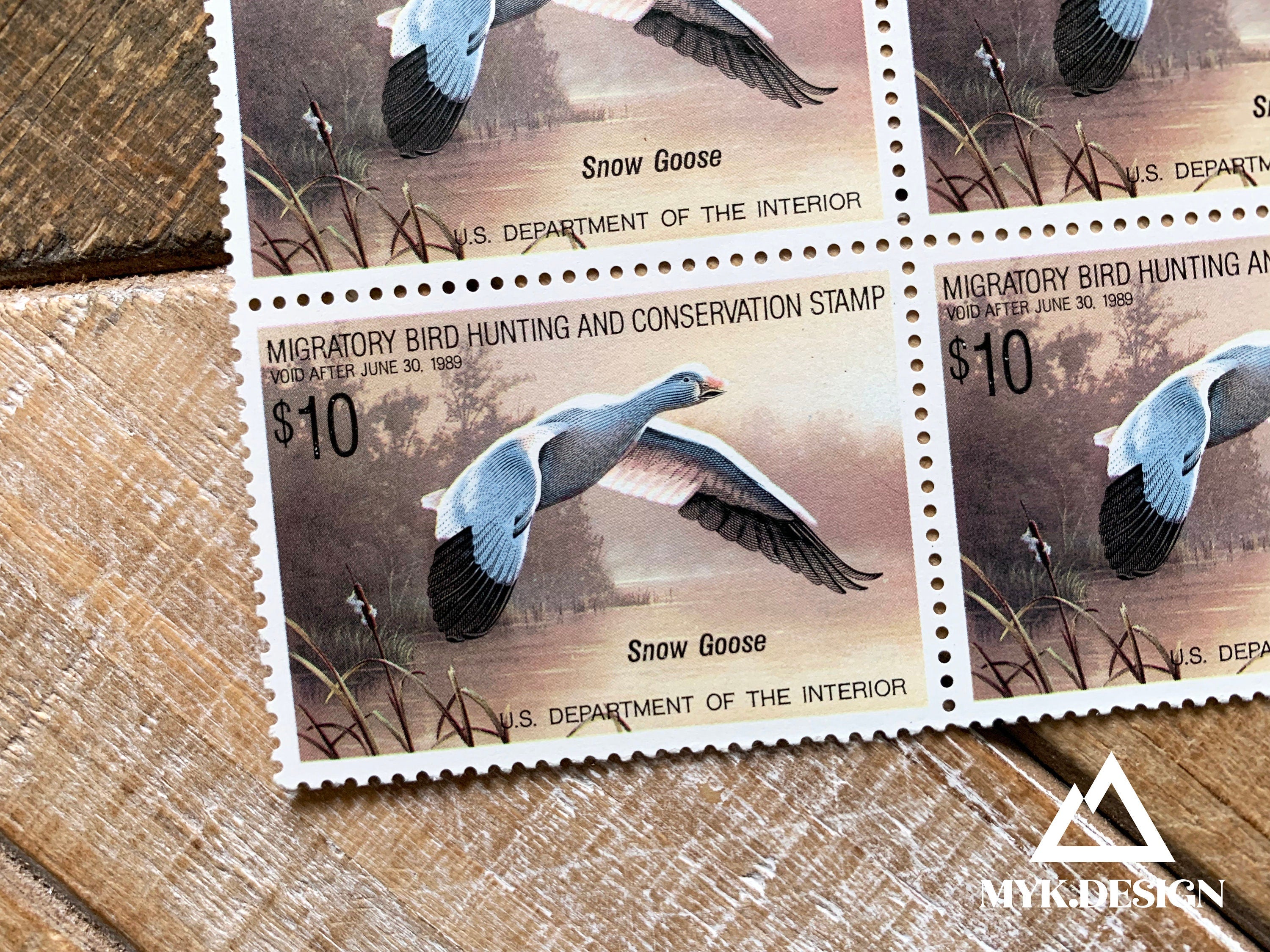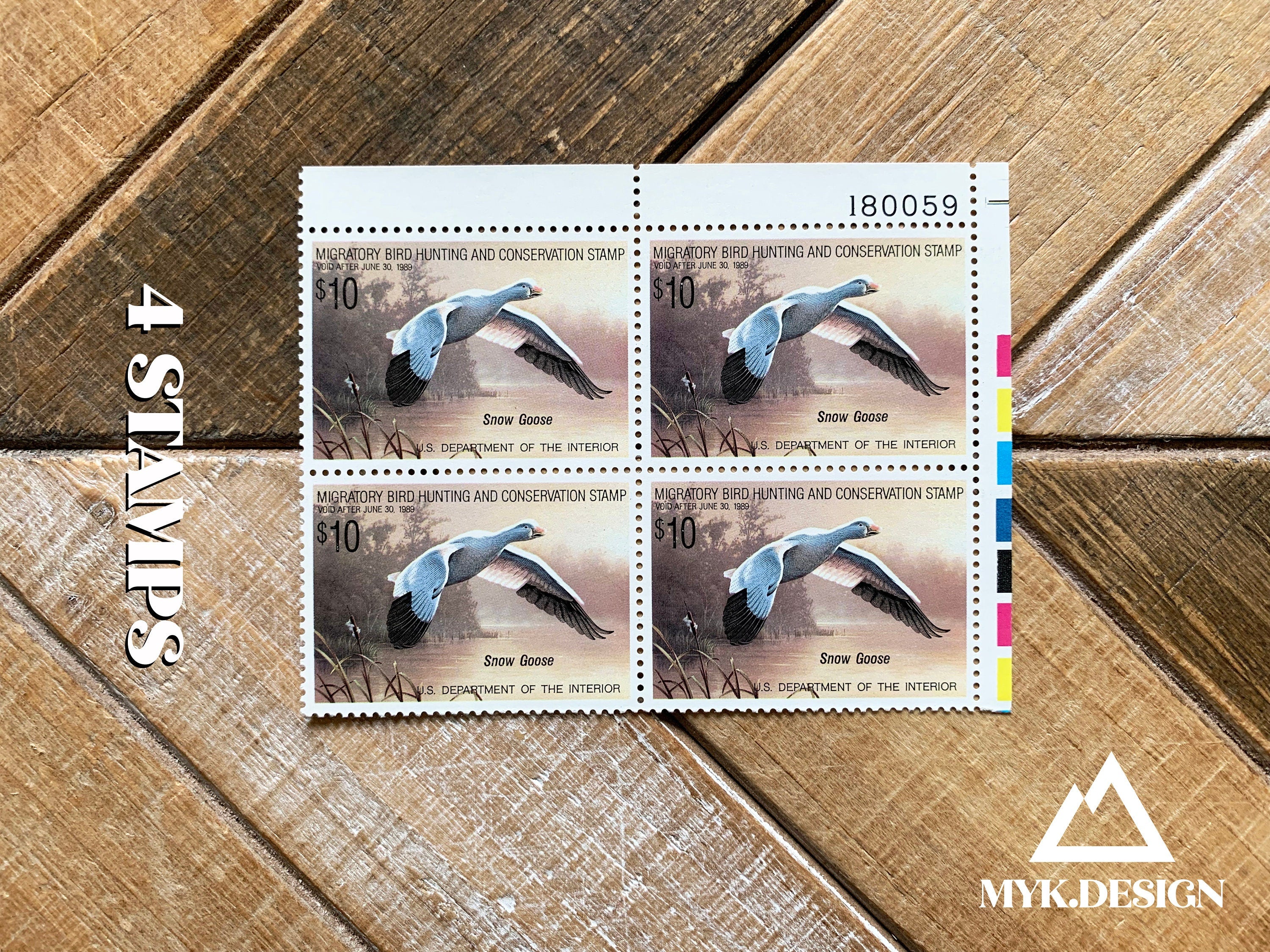 Snow Goose - 4 Hunting Permit Stamps | Face Value $10 | 1988 | Scott RW55