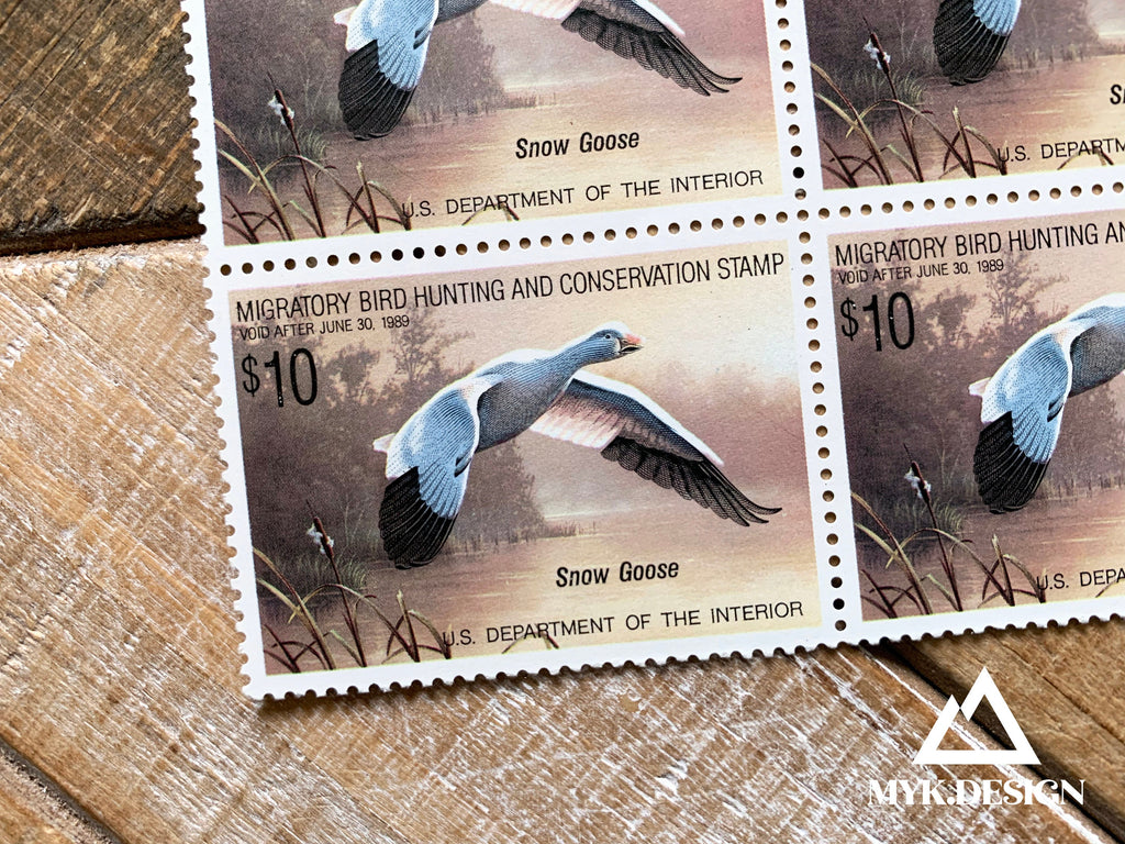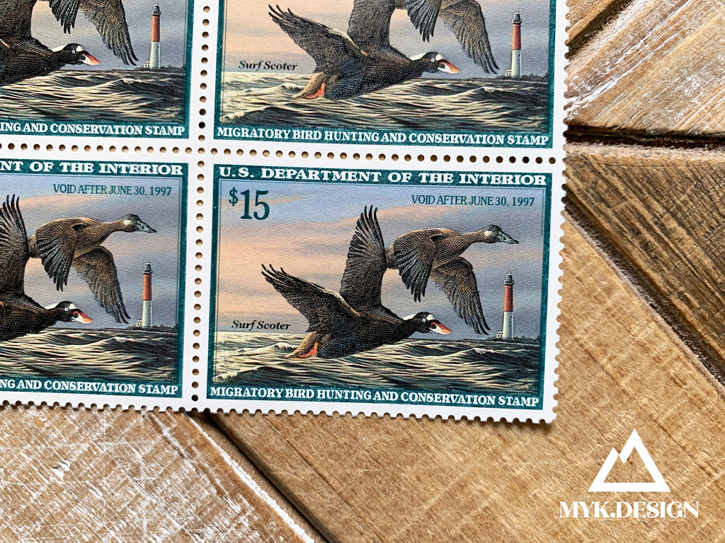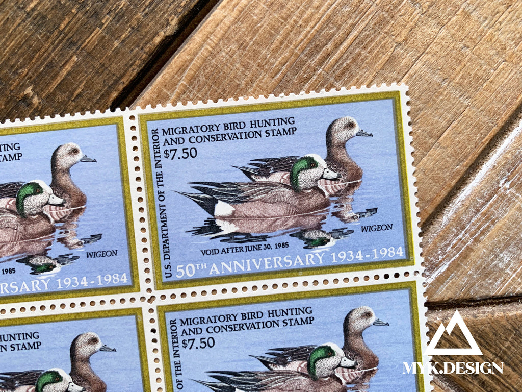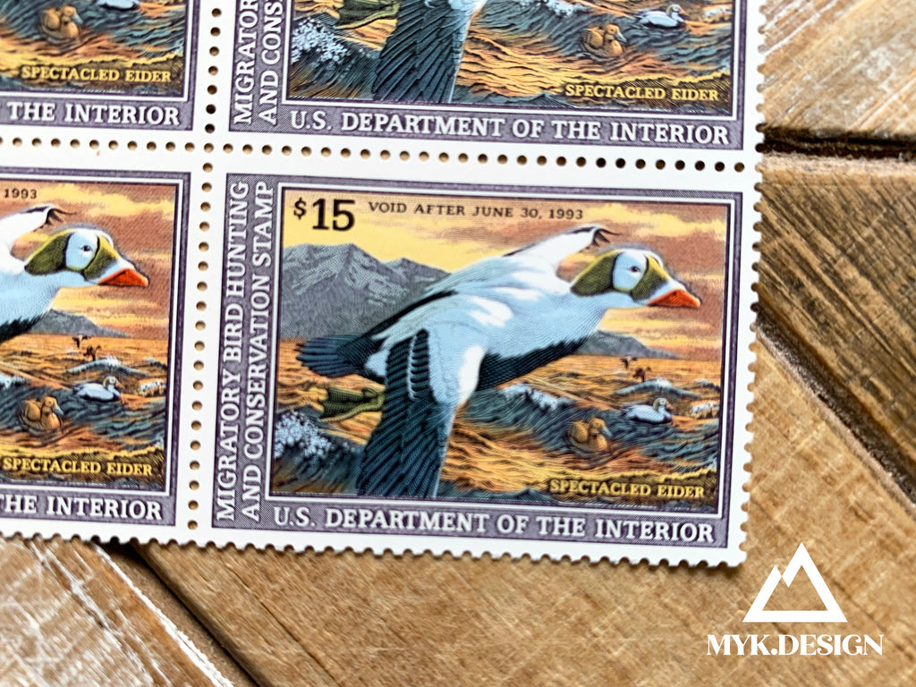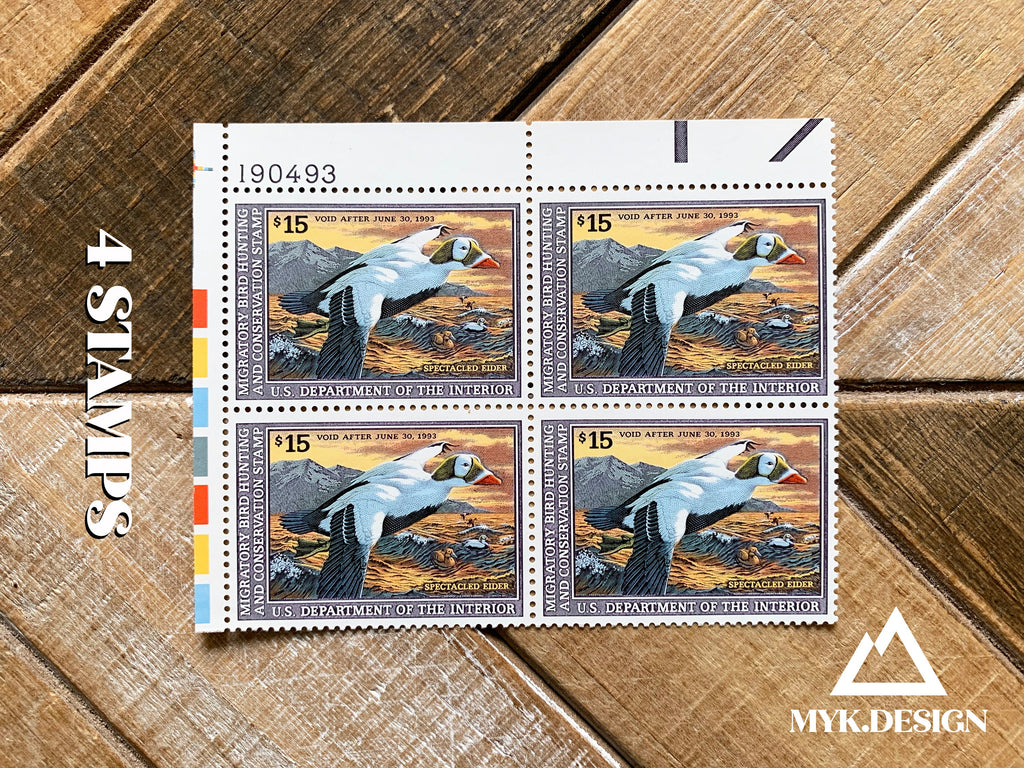 Hunting permit stamps (duck stamps) were first issued in 1934 and required to be affixed to a hunting license or to gain entry to some National Wildlife Refuges.  The revenue generated goes back into preservation and protection, and the duck stamp program is widely regarded as one of the most successful programs in conservation in existence.  (Duck stamps are not good for postage on mail.)