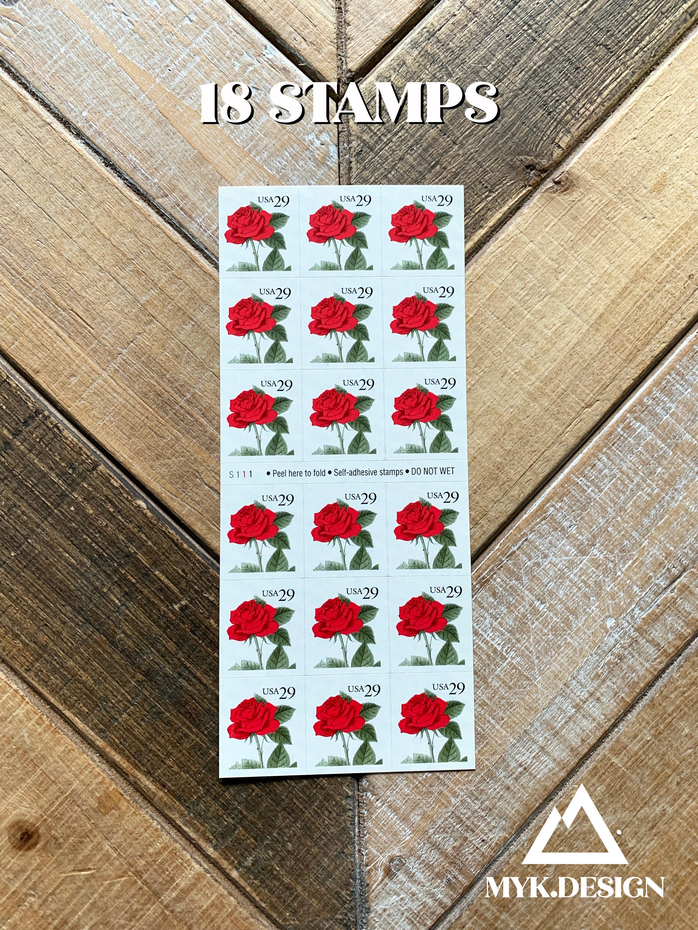 Red Rose Booklet of 18 U.S. Postage Stamps | Face Value 29 Cents | 1993 | Scott 2490