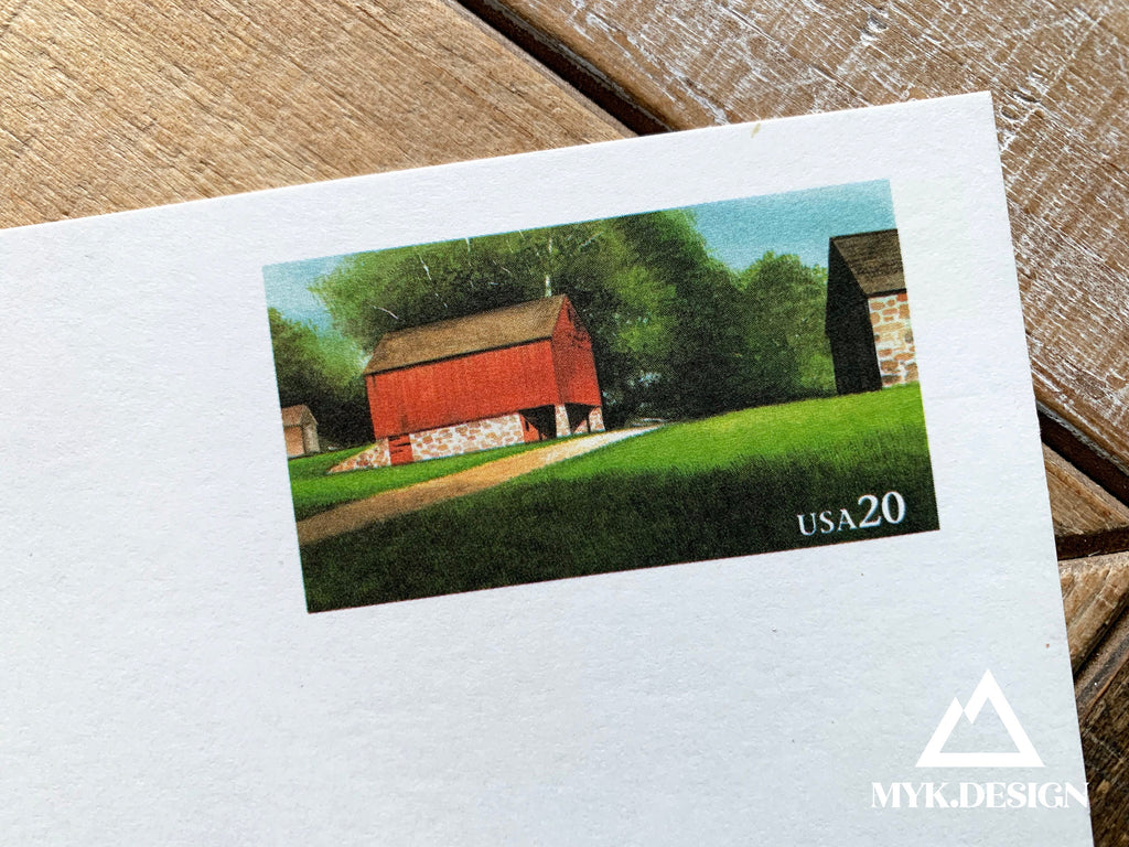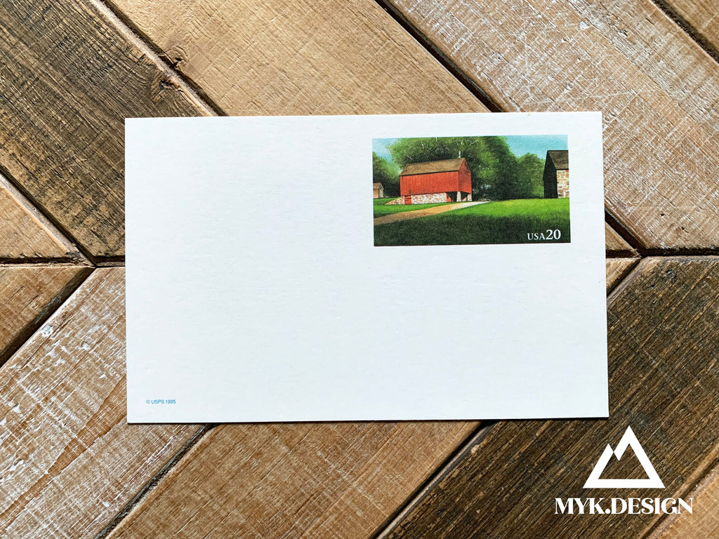 Mailable cards that are sold by the US Postal Service with postage pre-printed (not to be confused with "post cards" which are mailable cards where postage must be added by the user.)