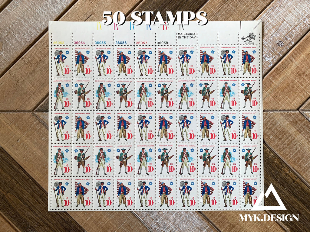 Revolutionary War Military Uniforms U.S. Postage Stamps | Face Value 10 Cents | 1975 | Scott 1565-68