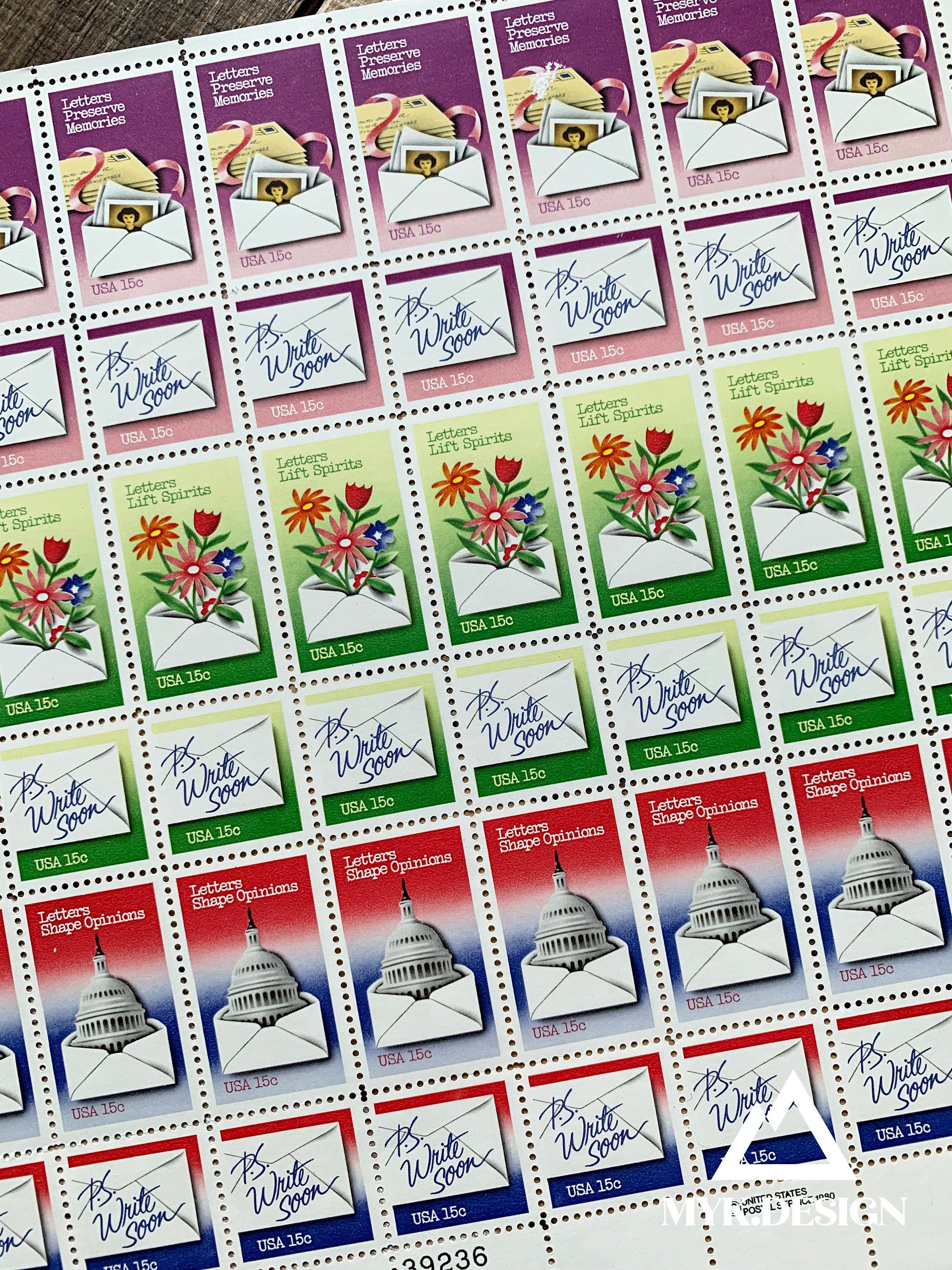 Shipping Info: We ship our stamps, stickers, and other flat items in a sturdy, flat mailer with tracking for the best protection. Because the post office considers this a “package” and not a flexible envelope, the cost of shipping is subject to package prices. This is the best way to protect your purchase.