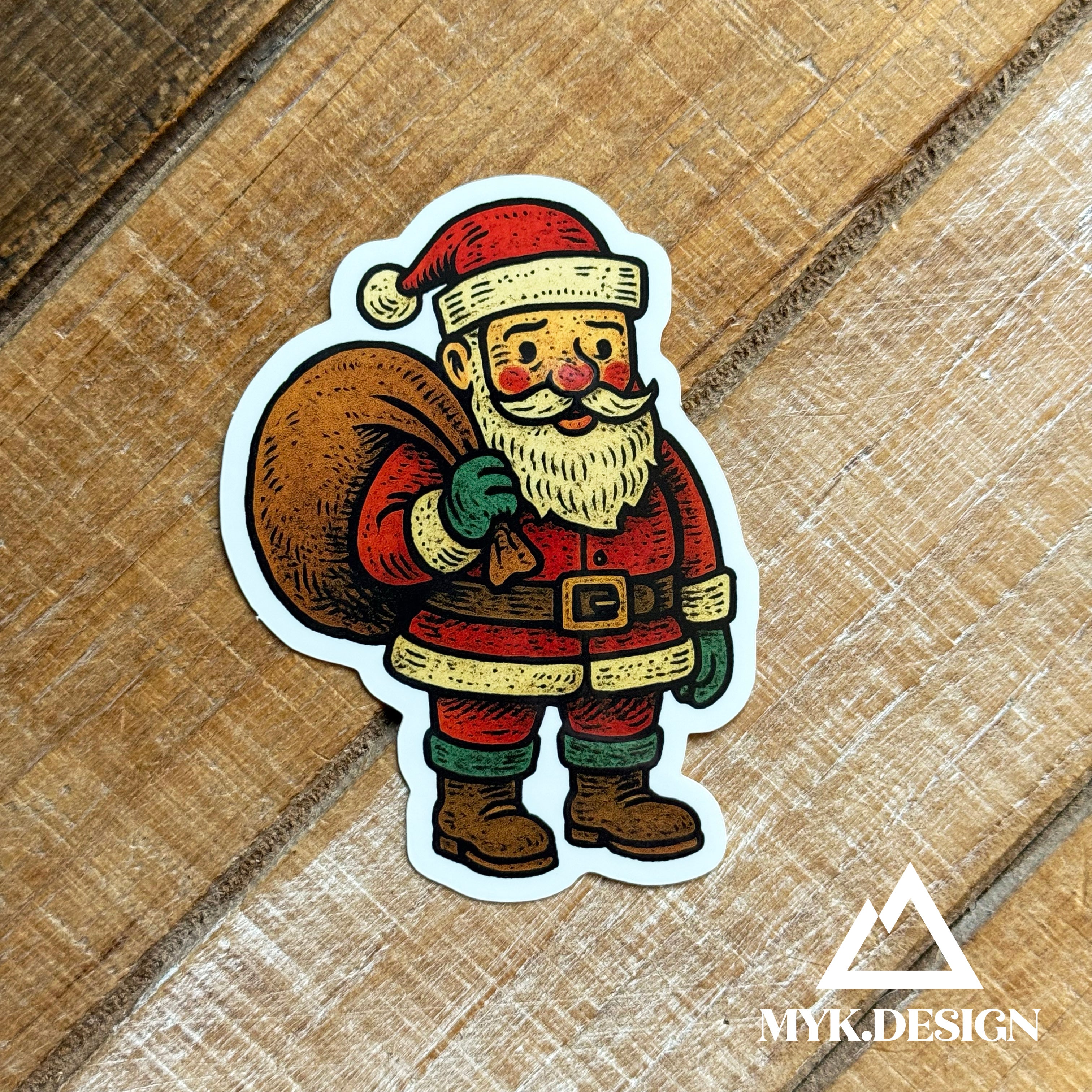 With rosy cheeks, cozy boots, and that unmistakable sparkle in his eye, this retro-styled Saint Nick is ready to spread cheer one chimney at a time. Designed in a classic etching-inspired look, he’s lugging a full sack of presents and more holiday spirit than a tin of cookies and a caroling choir combined. At 3” x 2.2”, he’s the perfect nostalgic touch for gift wrap, journals, stocking stuffers—or anywhere a little extra holly-jolly is needed.