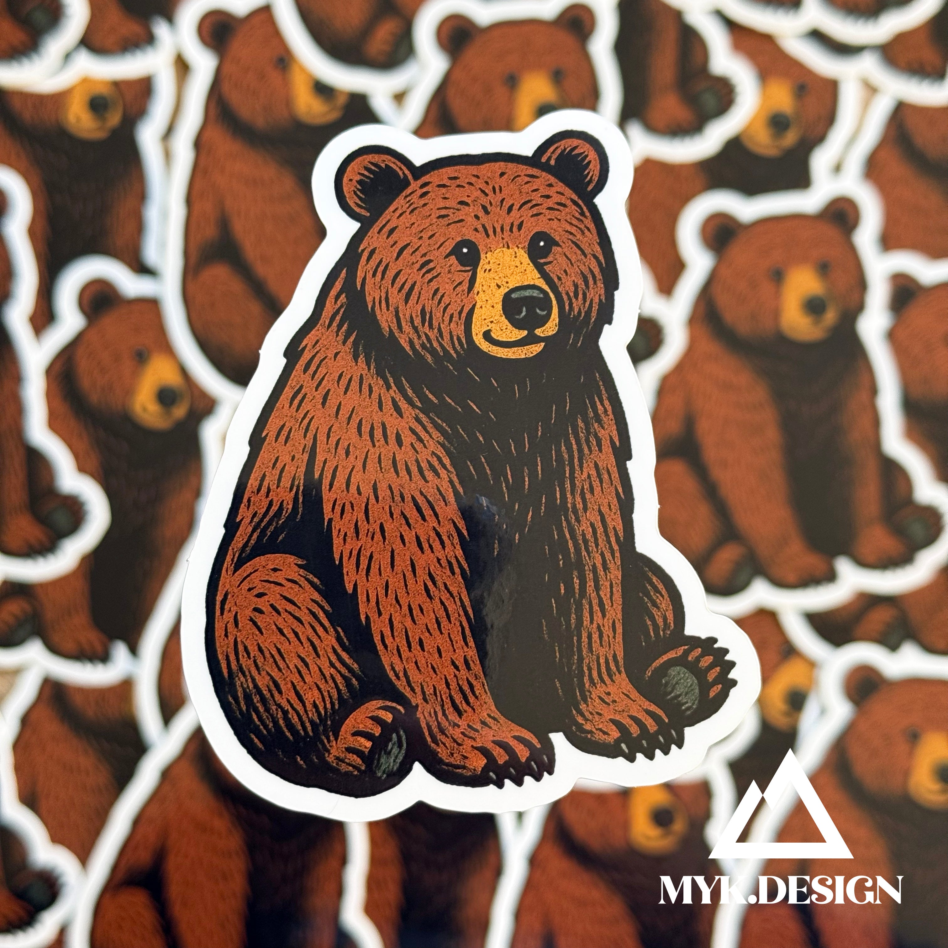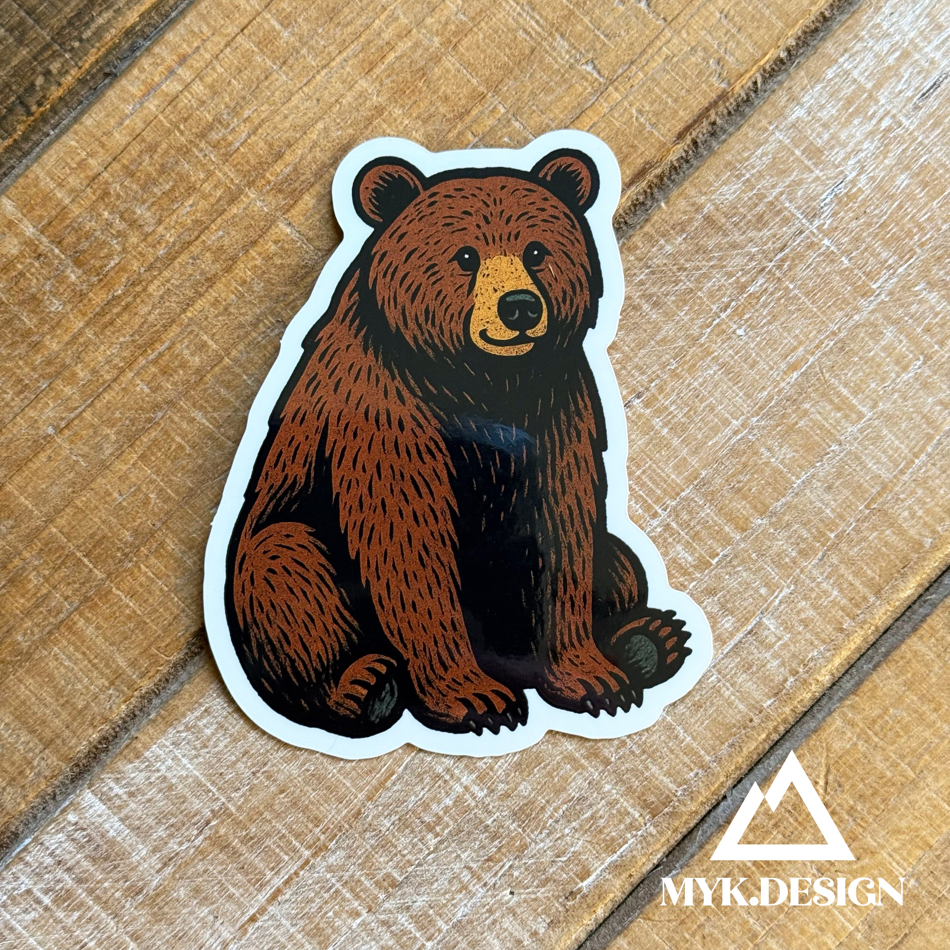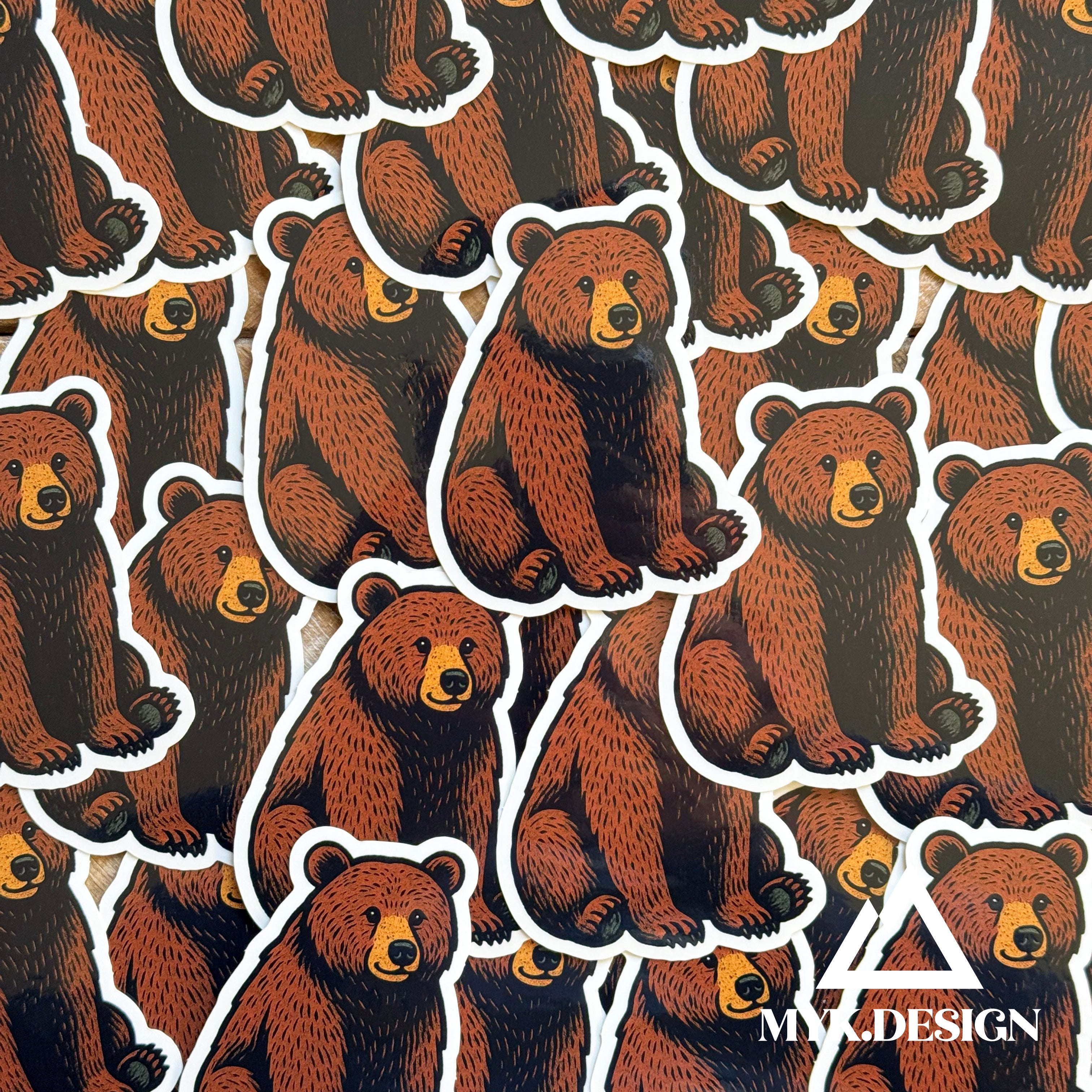 Donāt let the size fool youāTedās a big olā softie. With thick russet fur, a warm golden snout, and paws made for both high-fives and honey-snatching, Ted is the ultimate cuddlecore companion (in sticker form, of course). Whether heās lumbering through the woods or loafing by a stream, heās got a calm, comforting presence that makes you want to curl up beside him with a cozy blanket and a peanut butter sandwich.