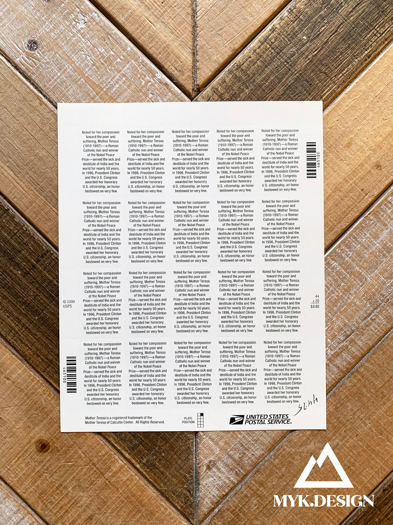 Mother Teresa | Sheet of 20 U.S. Postage Stamps | Face Value 44 Cents | 2010 | Scott 4475