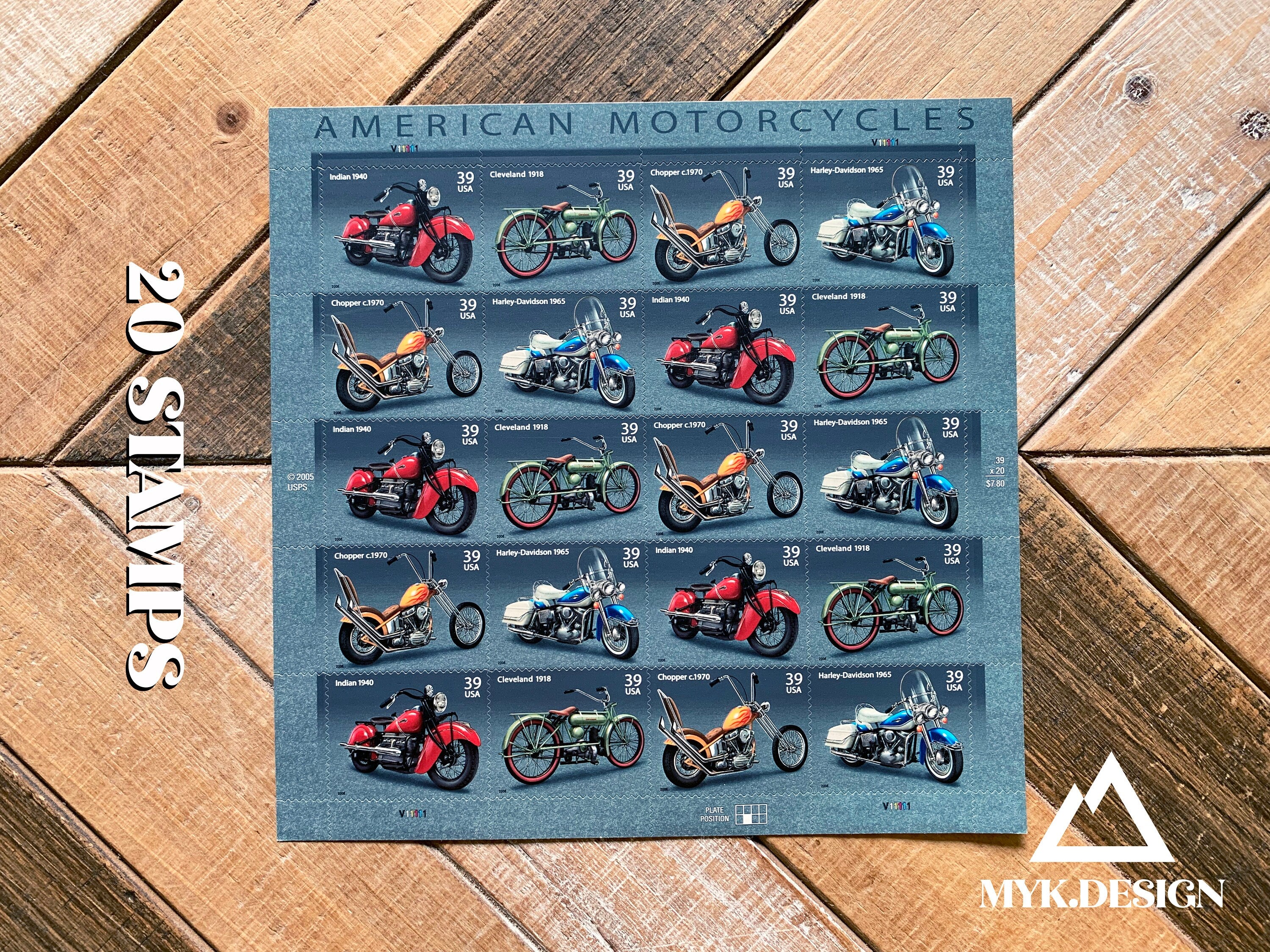 Motorcycles | Sheet of 20 U.S. Postage Stamps | Face Value 39 Cents | 2006 | Scott 4085-4088