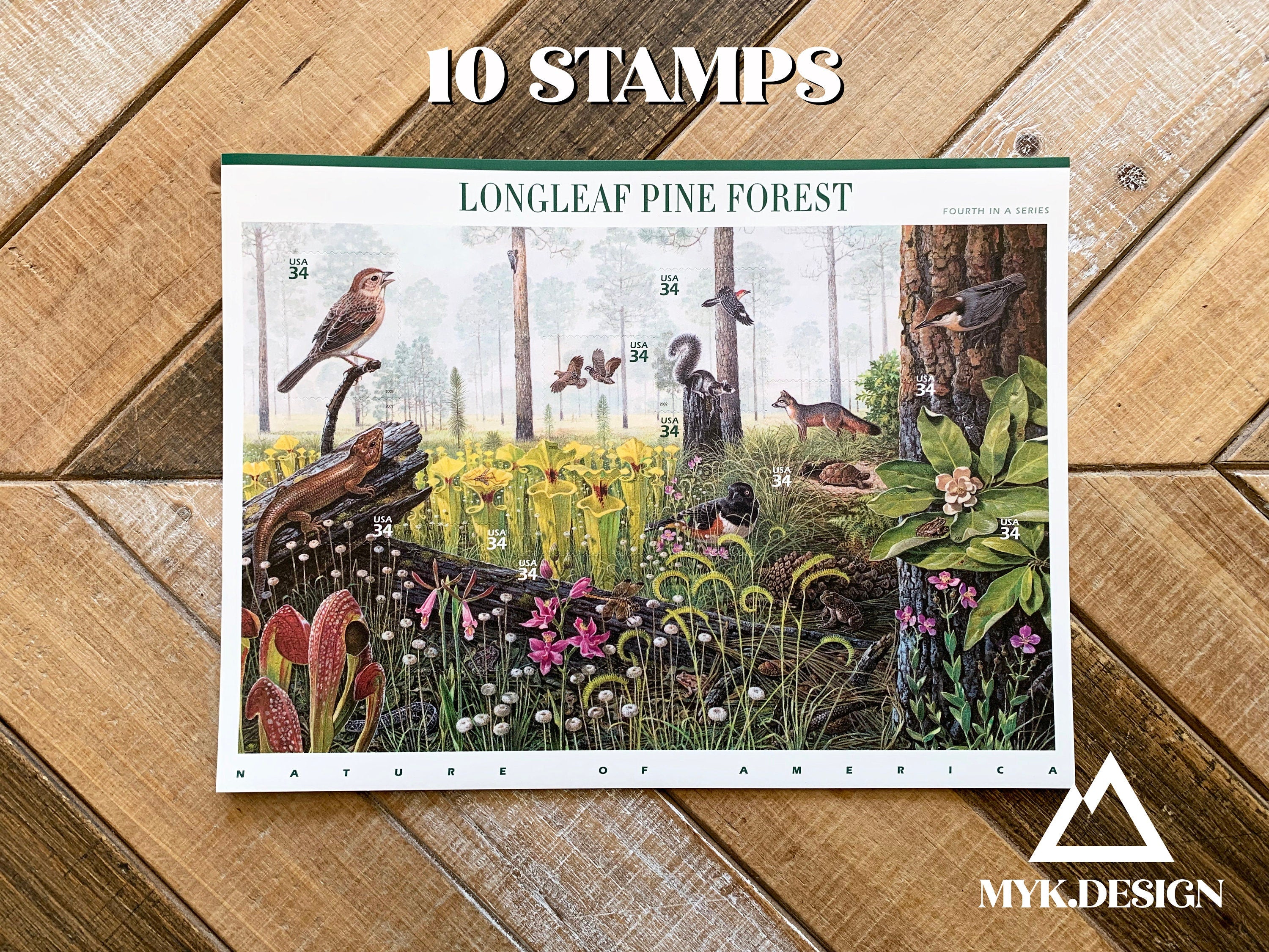Nature of America: Longleaf Pine Forest | Sheet of 10 U.S. Postage Stamps | Face Value 34 Cents | 2002 | Scott 3611