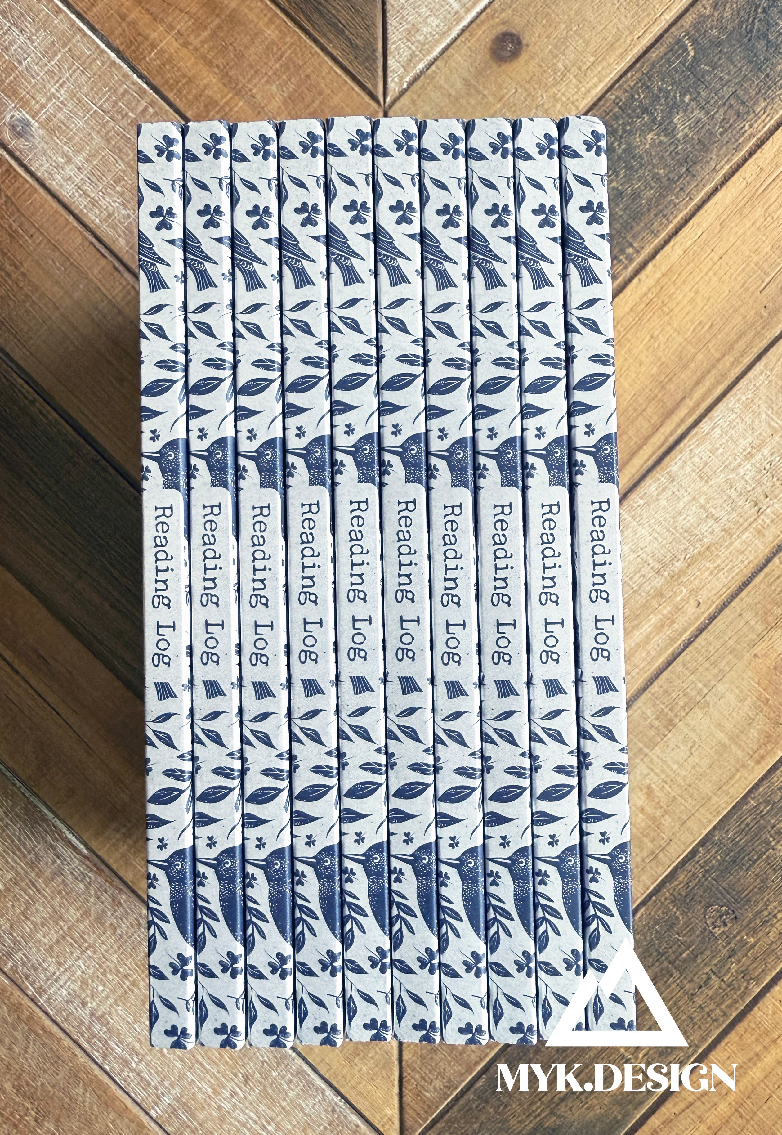 This beautifully crafted paperback notebook features a navy bird pattern on a soft gray background, with a flexible but durable cover that’s perfect for tossing in your bag. Inside are 120 pages with room to track up to 119 books. Each spread includes space for the title, author, publication date, genre, format (physical, digital, or audio), page count, ownership status (owned or borrowed), start and finish dates, a star rating, a generous lined section for your personal notes, quotes, or reviews, and space for a mini cover sticker (1.5” x 2.25”).