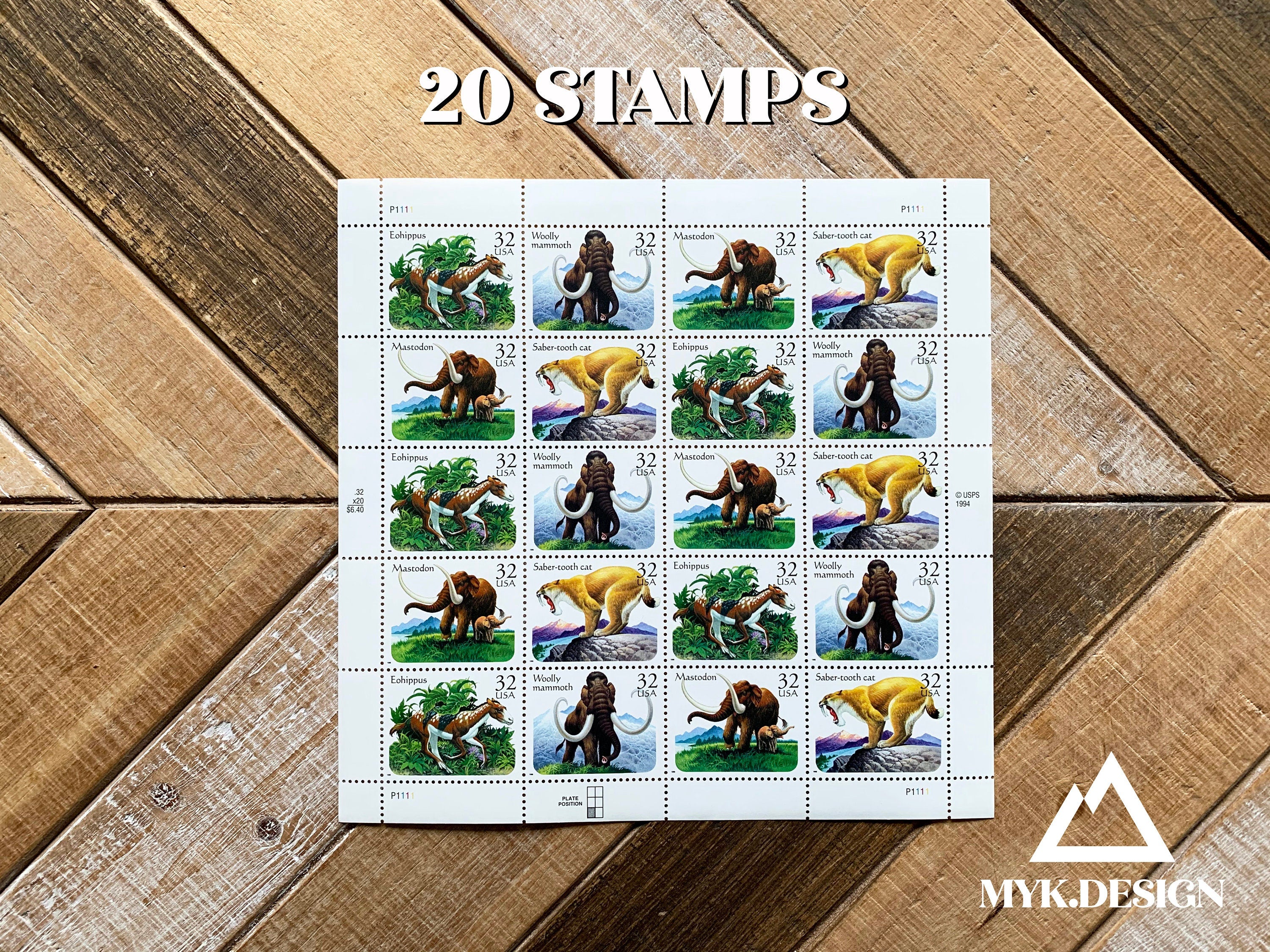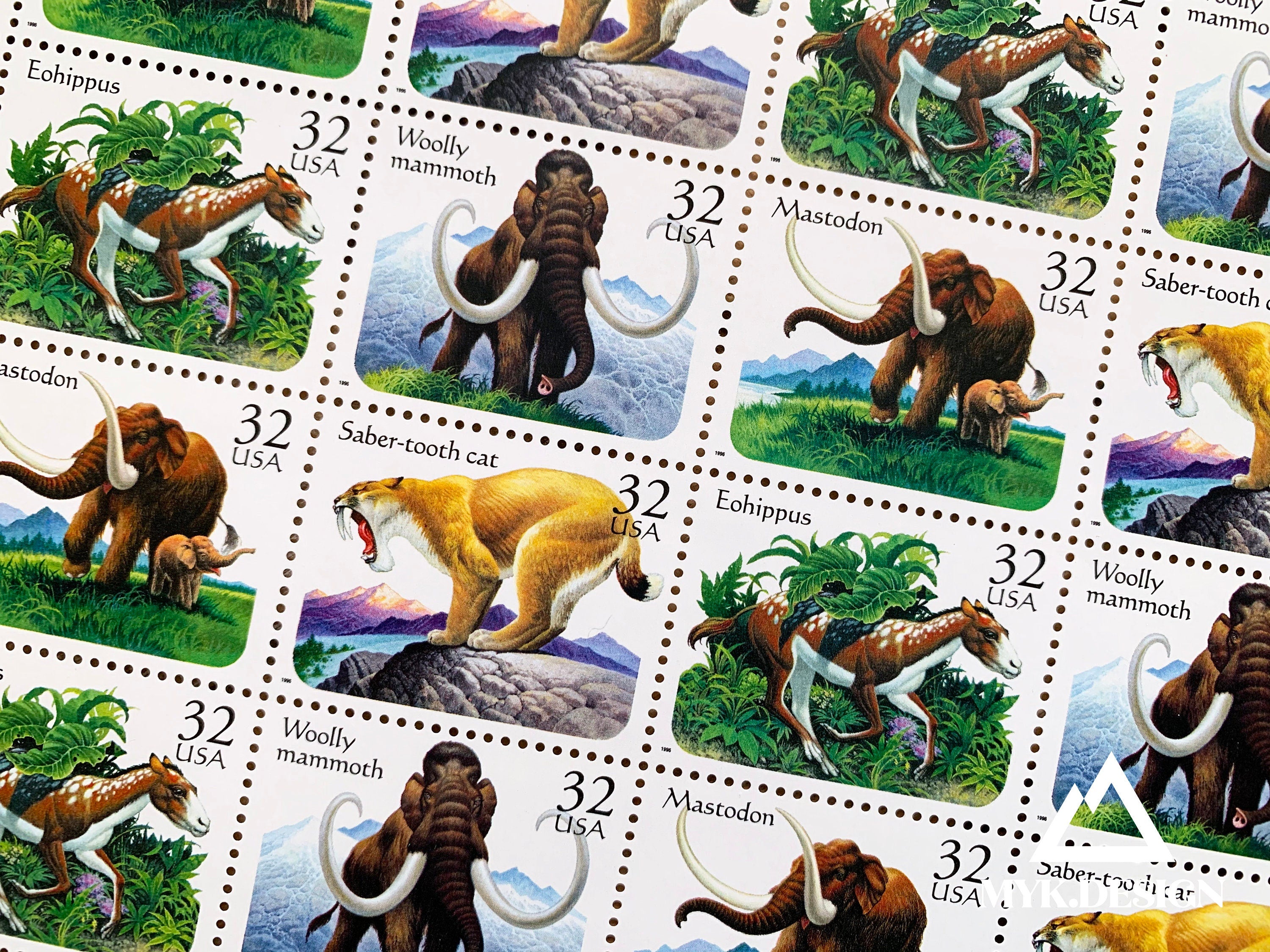 Prehistoric Animals U.S. Postage Stamps | Face Value 32 Cents | 1996 | Scott 3077-3080