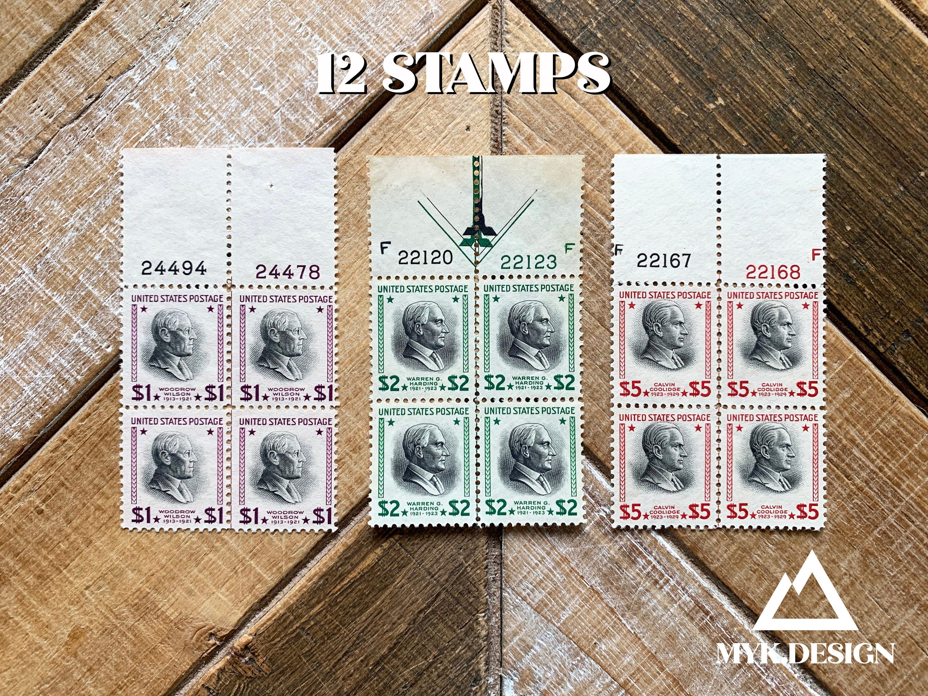 Presidential Issue: Wilson, Harding, Coolidge U.S. Postage Stamps | Face Value $1, $2 & $5 | 1938 | Scott 832, 833, 834