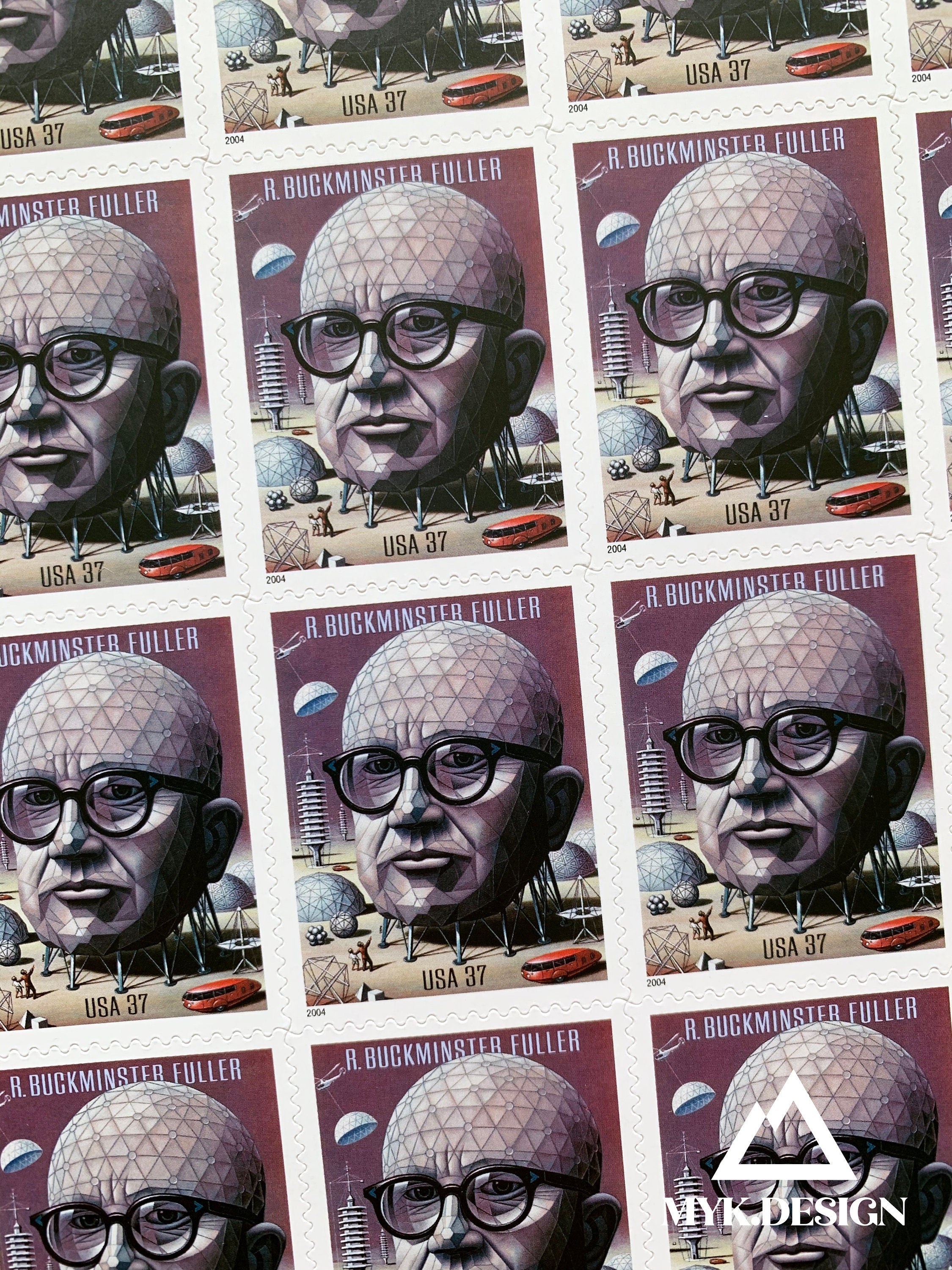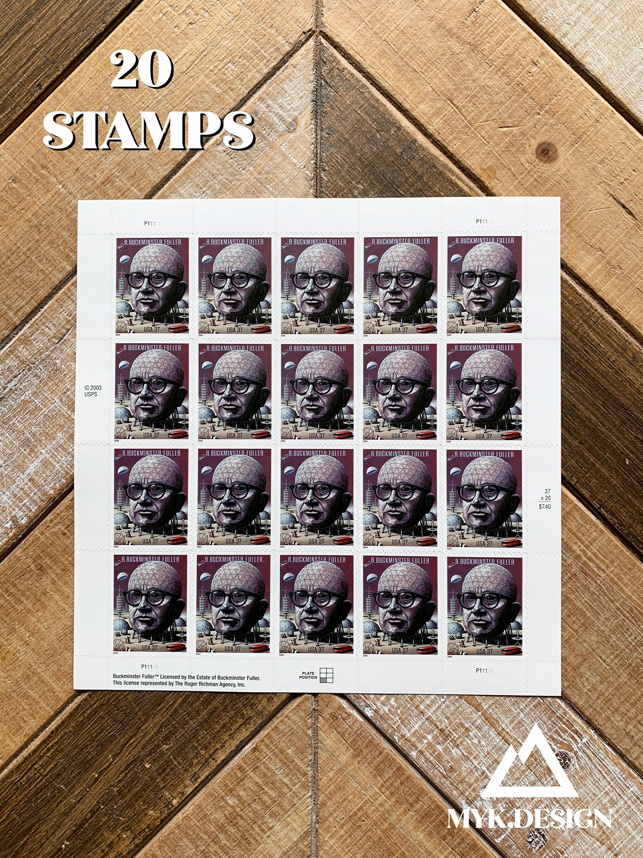 R Buckminster Fuller | Sheet of 20 U.S. Postage Stamps | Face Value 37 Cents | 2004 | Scott 3870