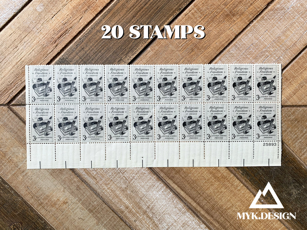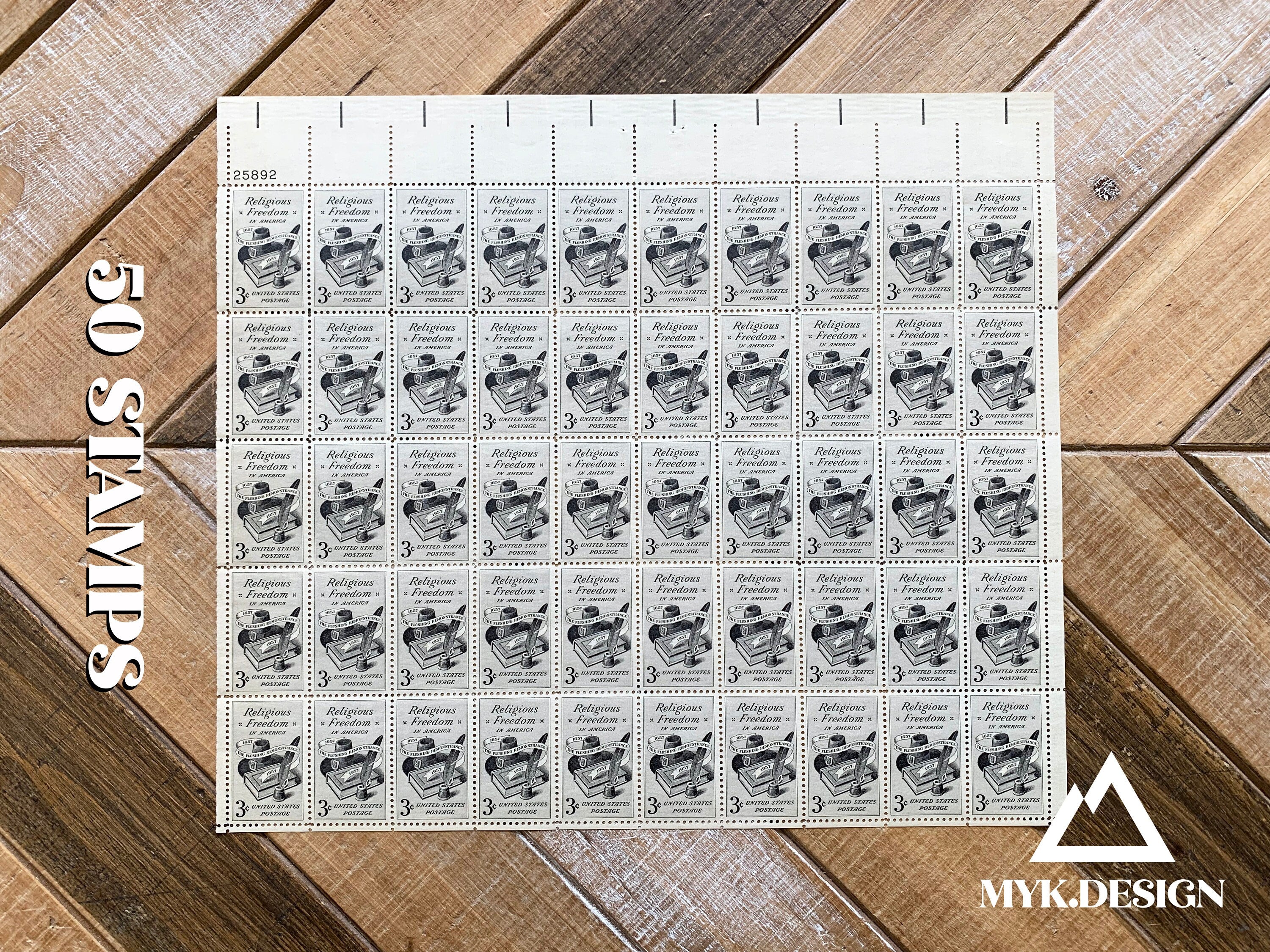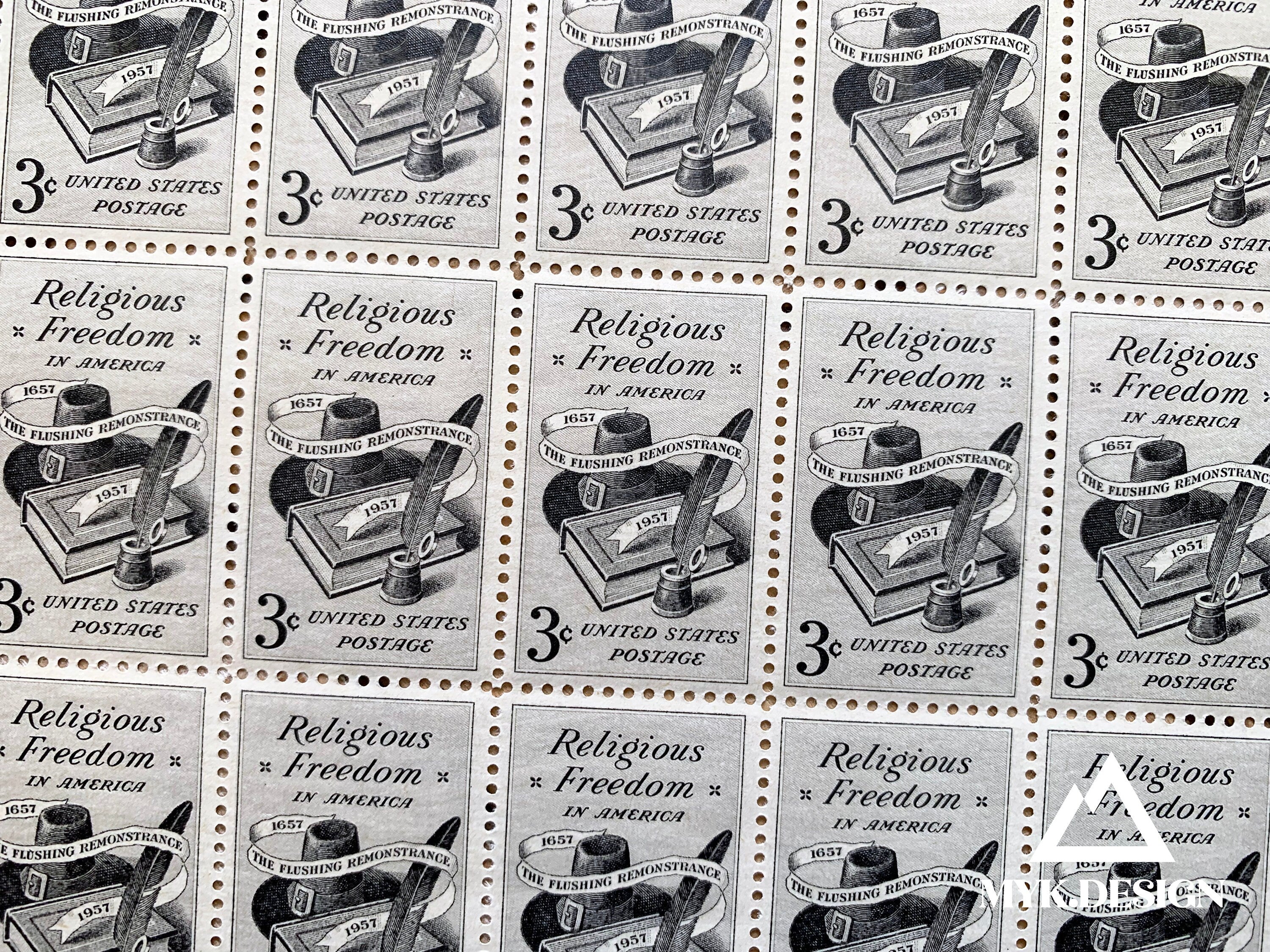 Religious Freedom, Bible, Hat, Quill Pen U.S. Postage Stamps | Face Value 3 Cents | 1957 | Scott 1099