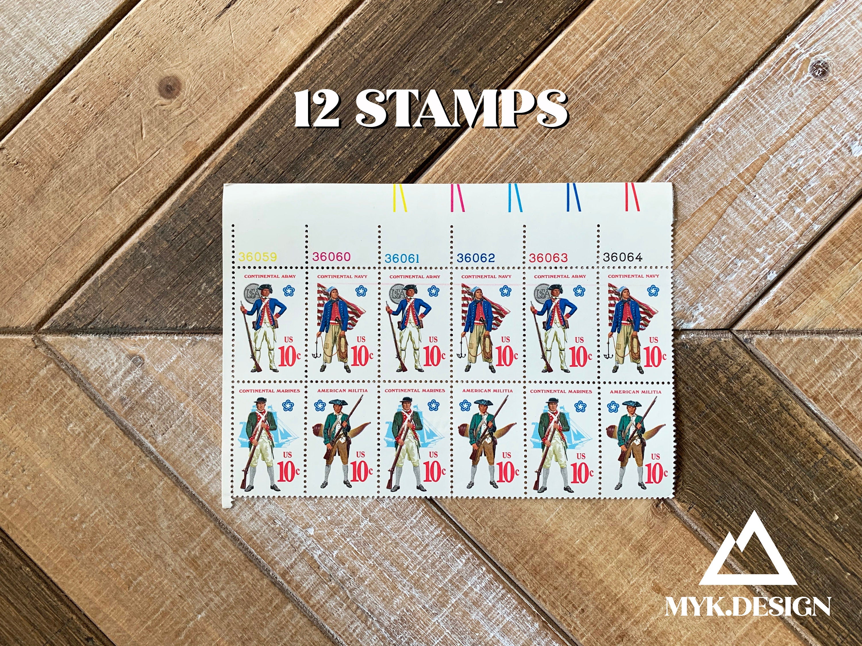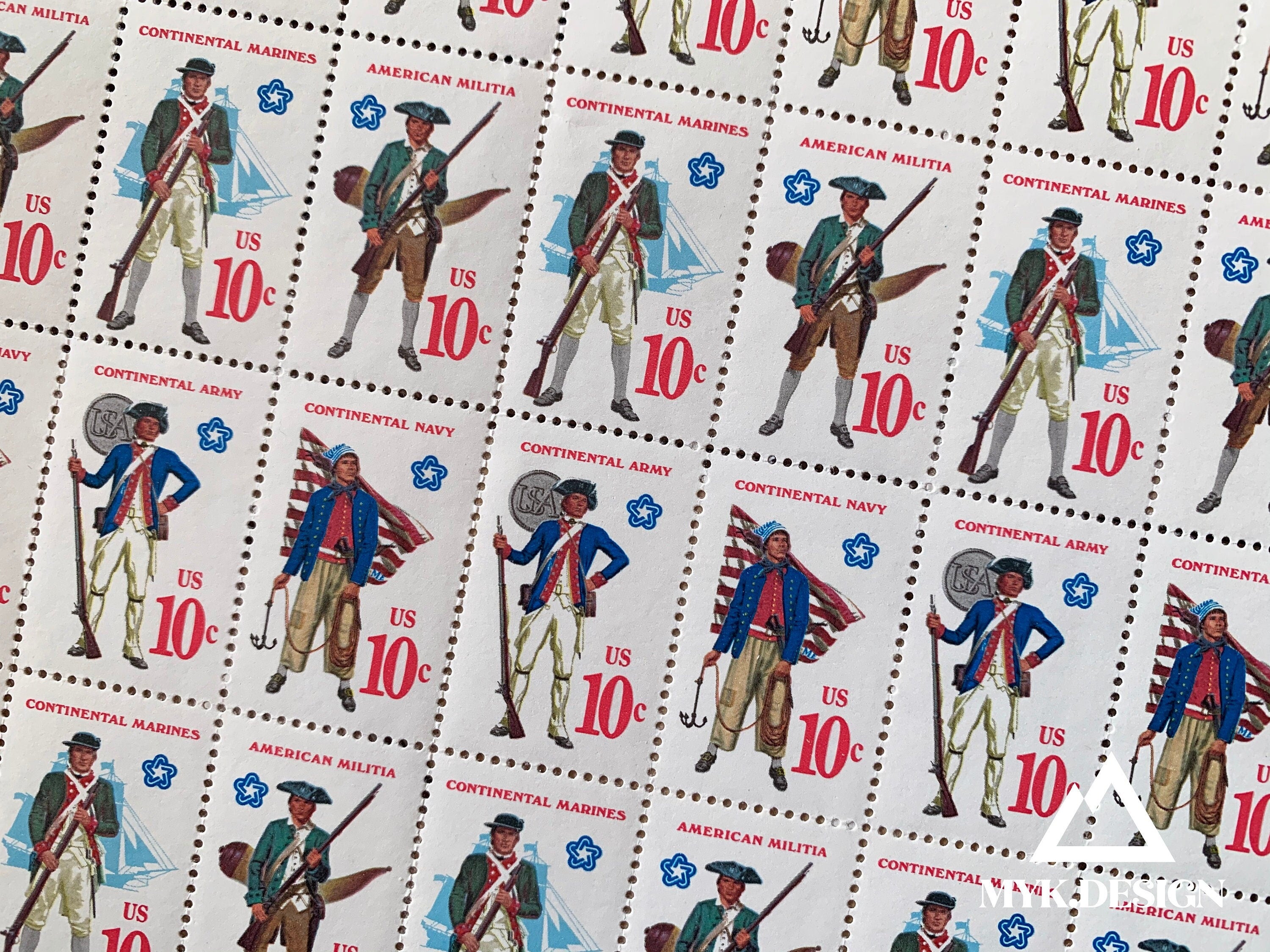 Revolutionary War Military Uniforms U.S. Postage Stamps | Face Value 10 Cents | 1975 | Scott 1565-68