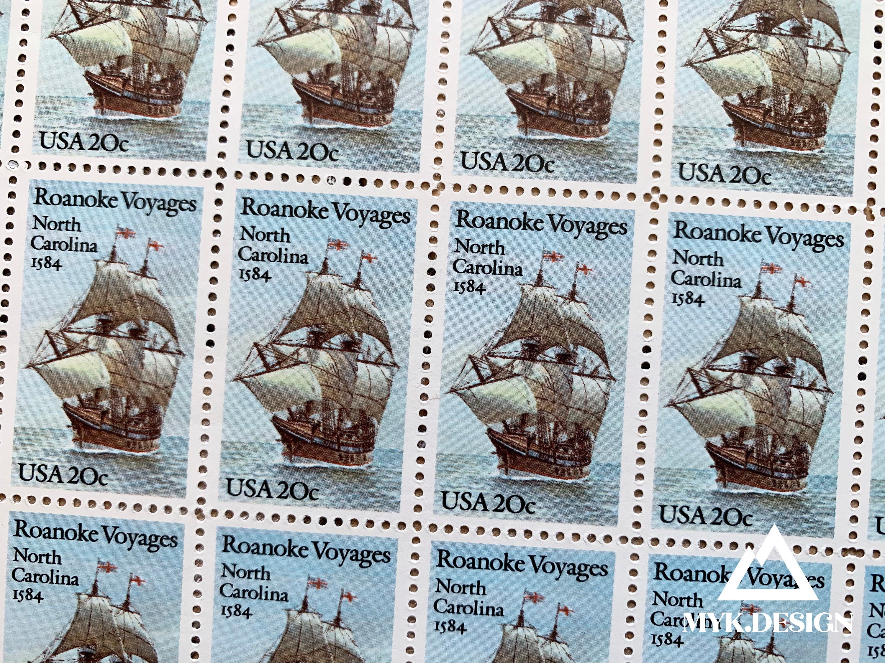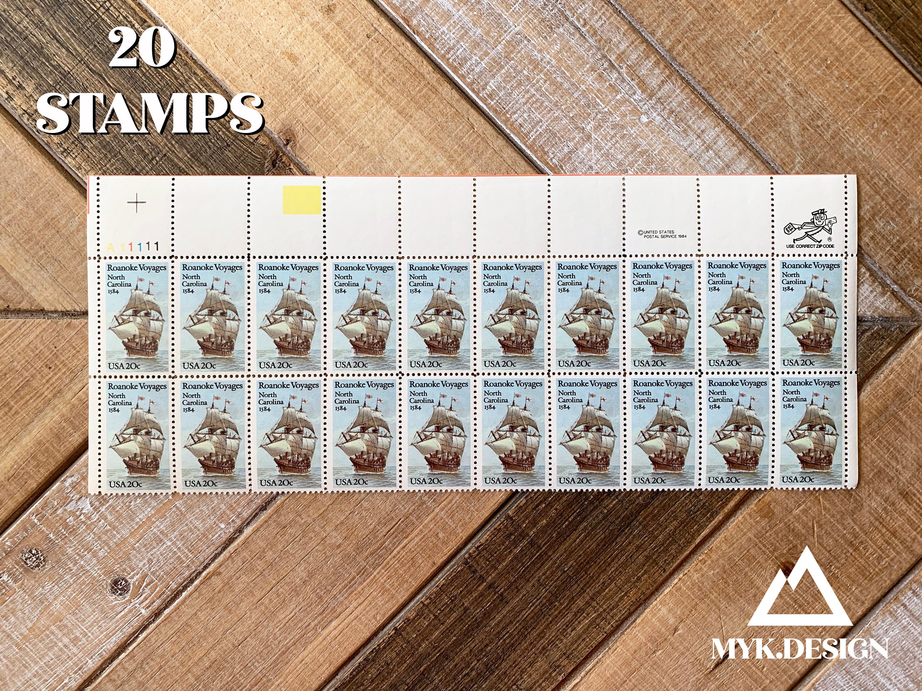 Roanoke Voyages North Carolina U.S. Postage Stamps | Face Value 20 Cents | 1984 | Scott 2093