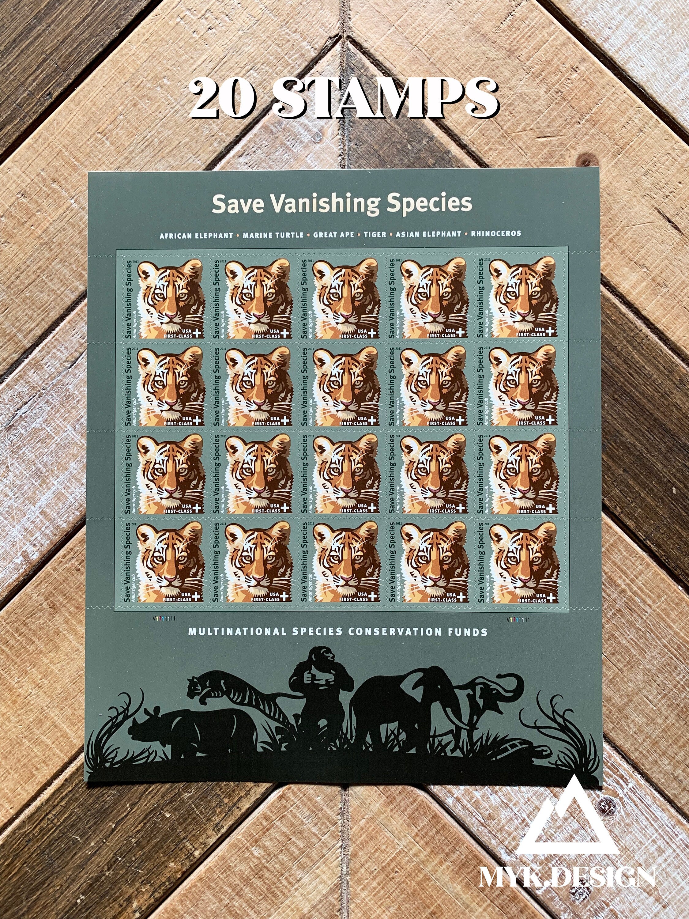 Save Vanishing Species: Amur Tiger Cub Conservation Pane of 20 U.S. Postage Stamps | Face Value 55 Cents | 2011 | Scott B4 | Semi-Postal