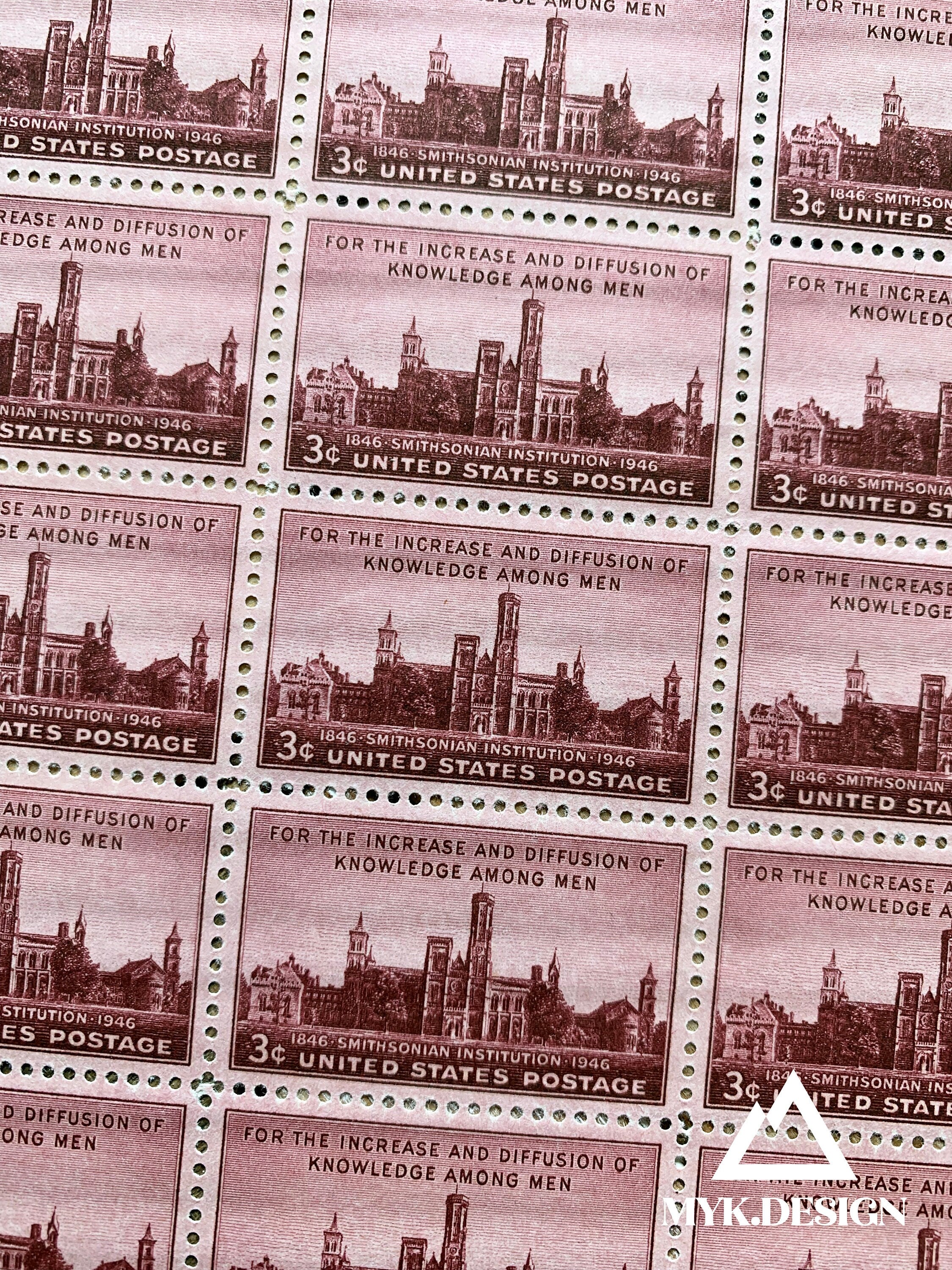 Smithsonian Institution, Washington DC Sheet of 50 U.S. Postage Stamps | Face Value 3 Cents | 1946 | Scott 943