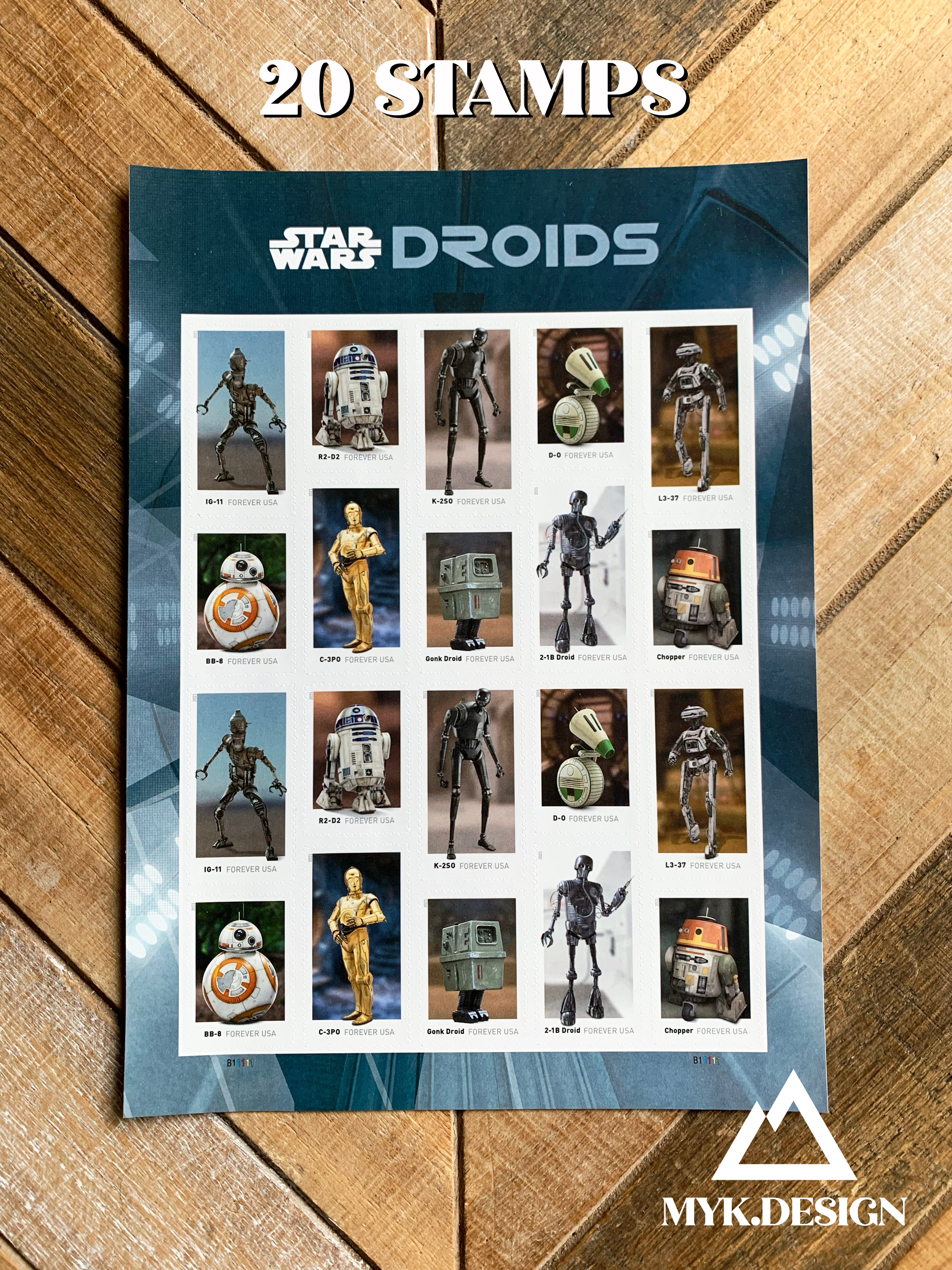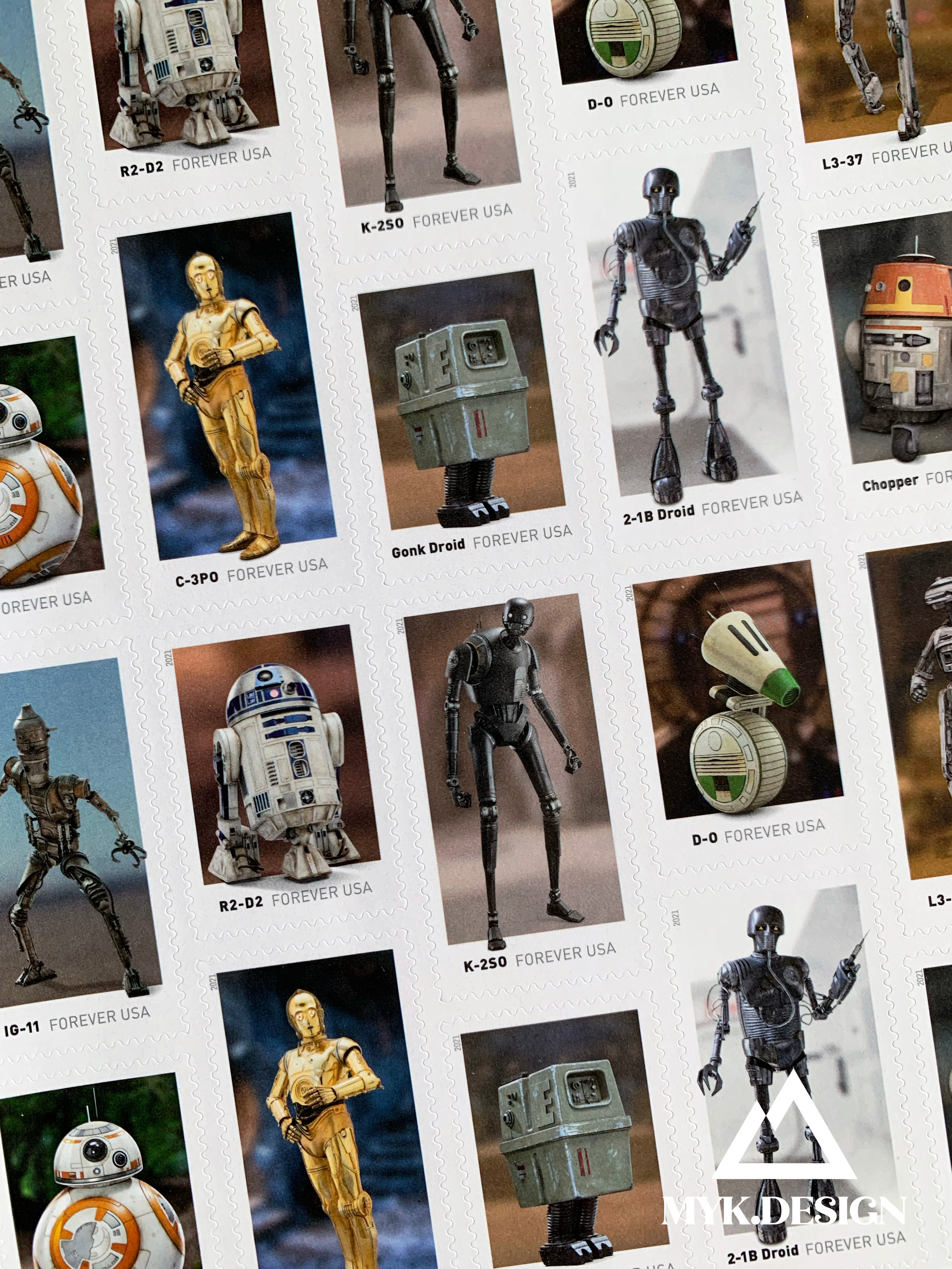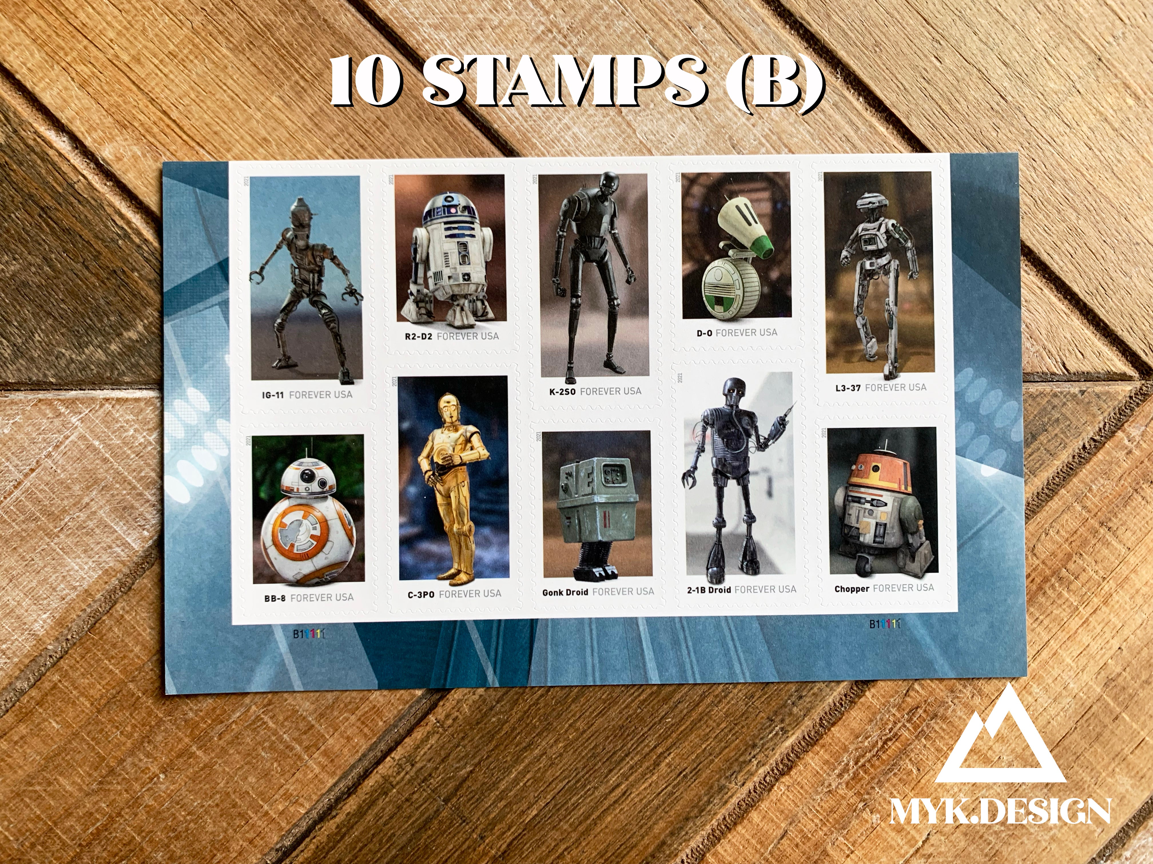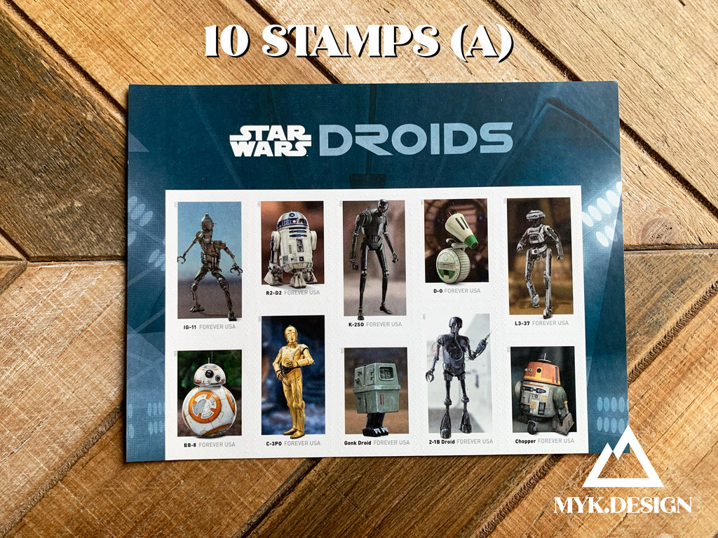 Star Wars Droids: C-3PO, R2-D2, BB-8, Chopper, Gonk | U.S. Postage Stamps | Face Value Forever 1 oz | 2021 | Scott 5573-5582