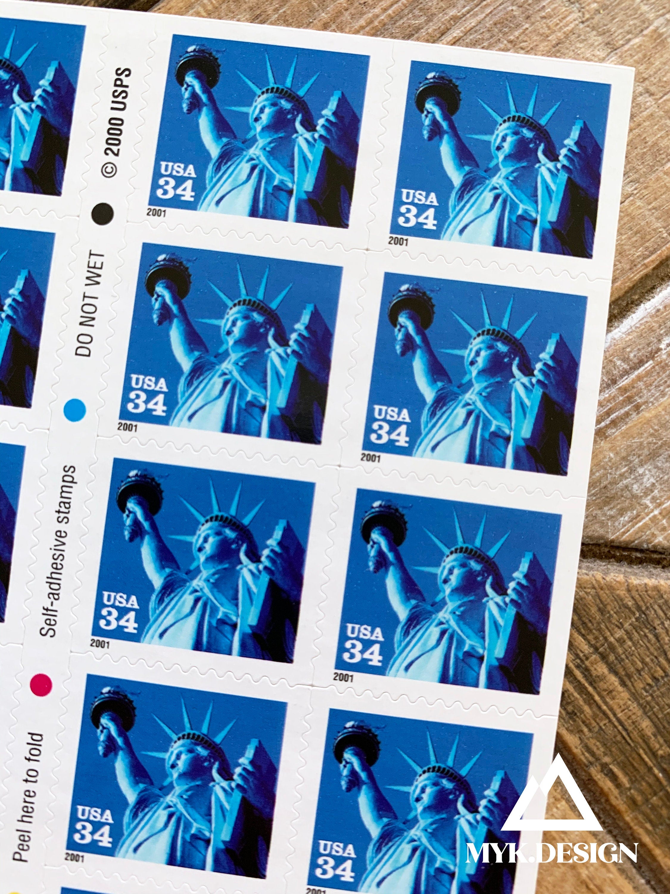 Shipping Info: We ship our stamps, stickers, and other flat items in a sturdy, flat mailer with tracking for the best protection. Because the post office considers this a “package” and not a flexible envelope, the cost of shipping is subject to package prices. This is the best way to protect your purchase.