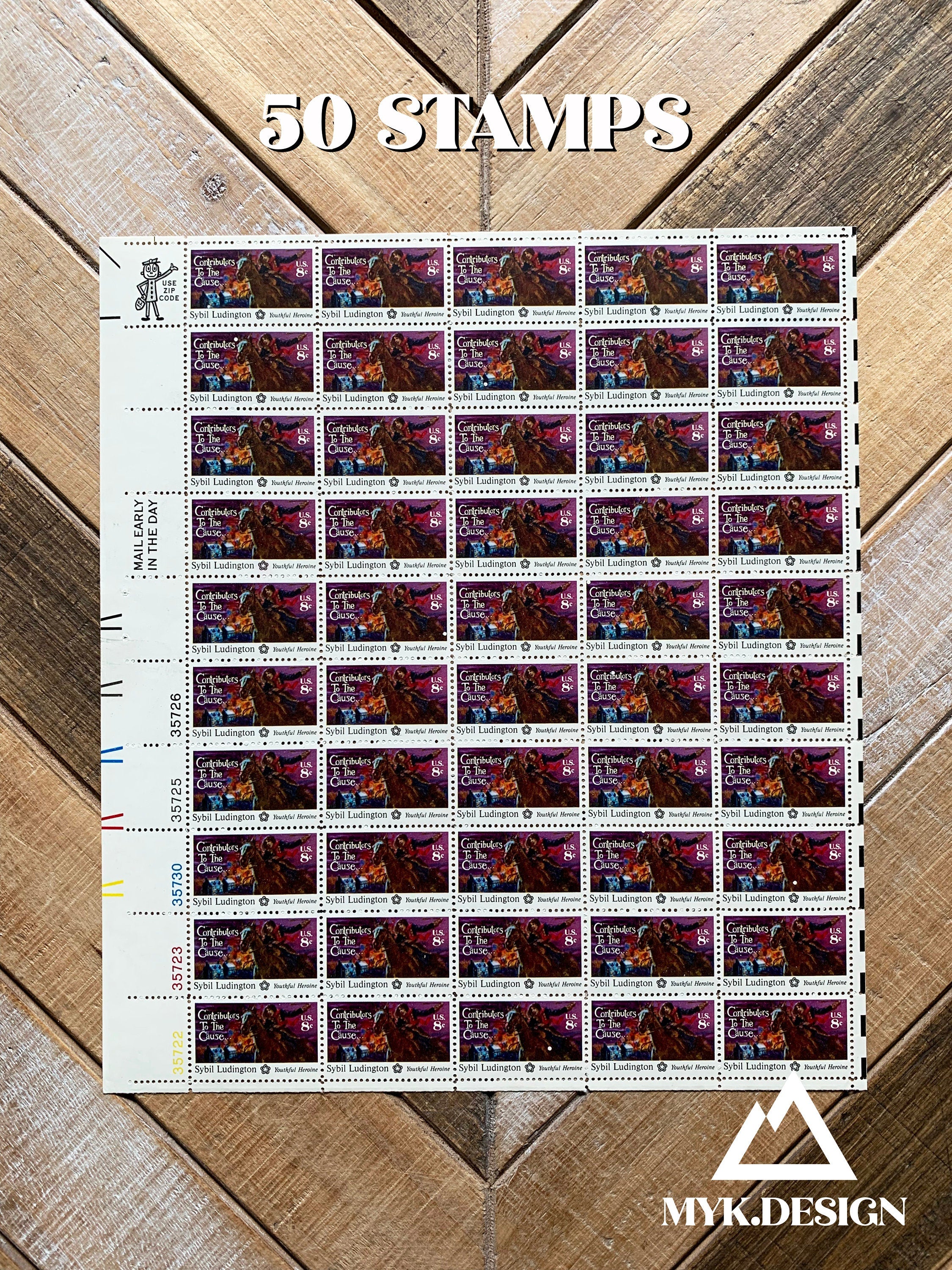 Shipping Info: We ship our stamps, stickers, and other flat items in a sturdy, flat mailer with tracking for the best protection. Because the post office considers this a “package” and not a flexible envelope, the cost of shipping is subject to package prices. This is the best way to protect your purchase.