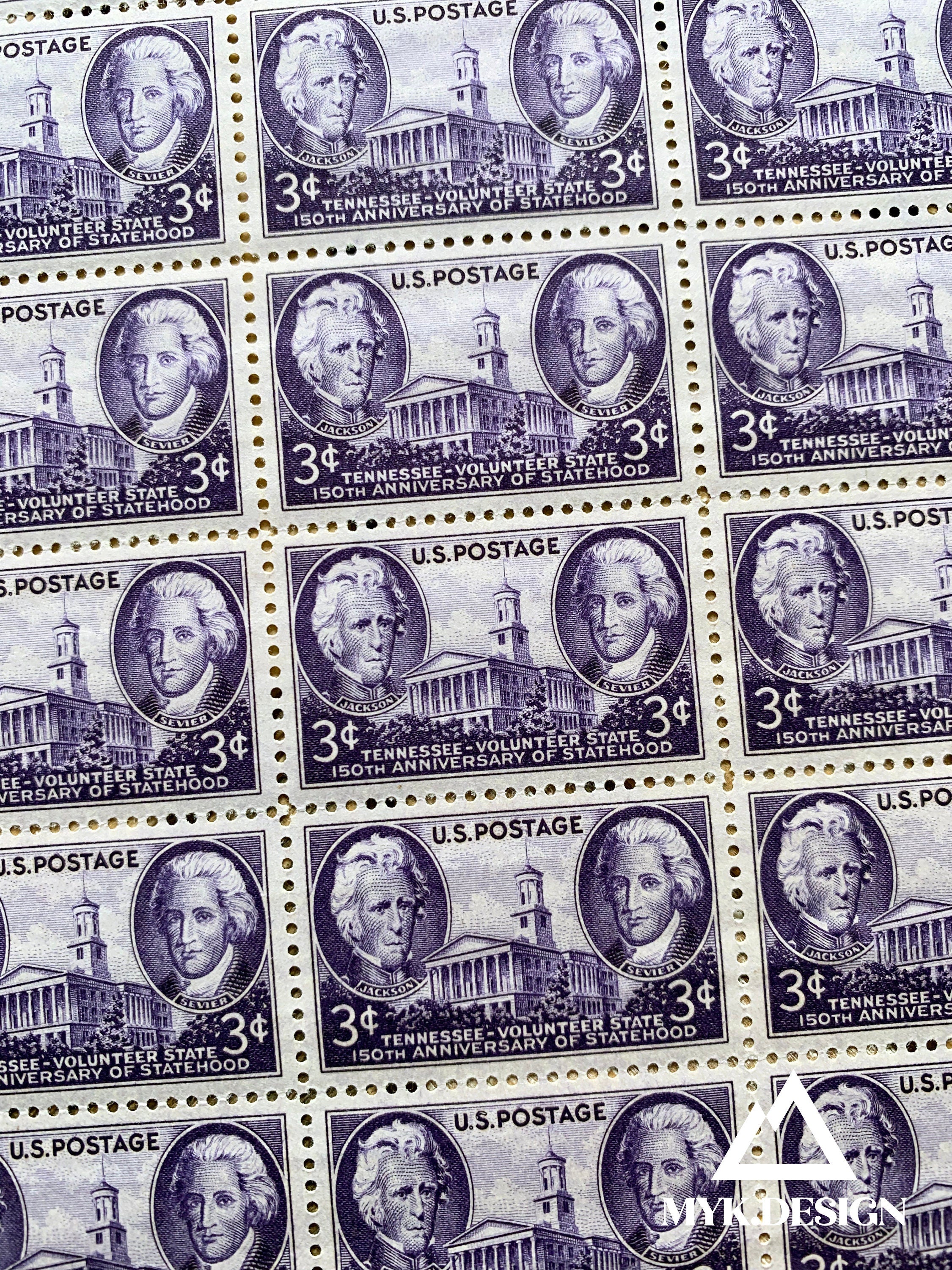 Tennessee Statehood, Andrew Jackson, John Sevier Sheet of 50 U.S. Postage Stamps | Face Value 3 Cents | 1946 | Scott 941