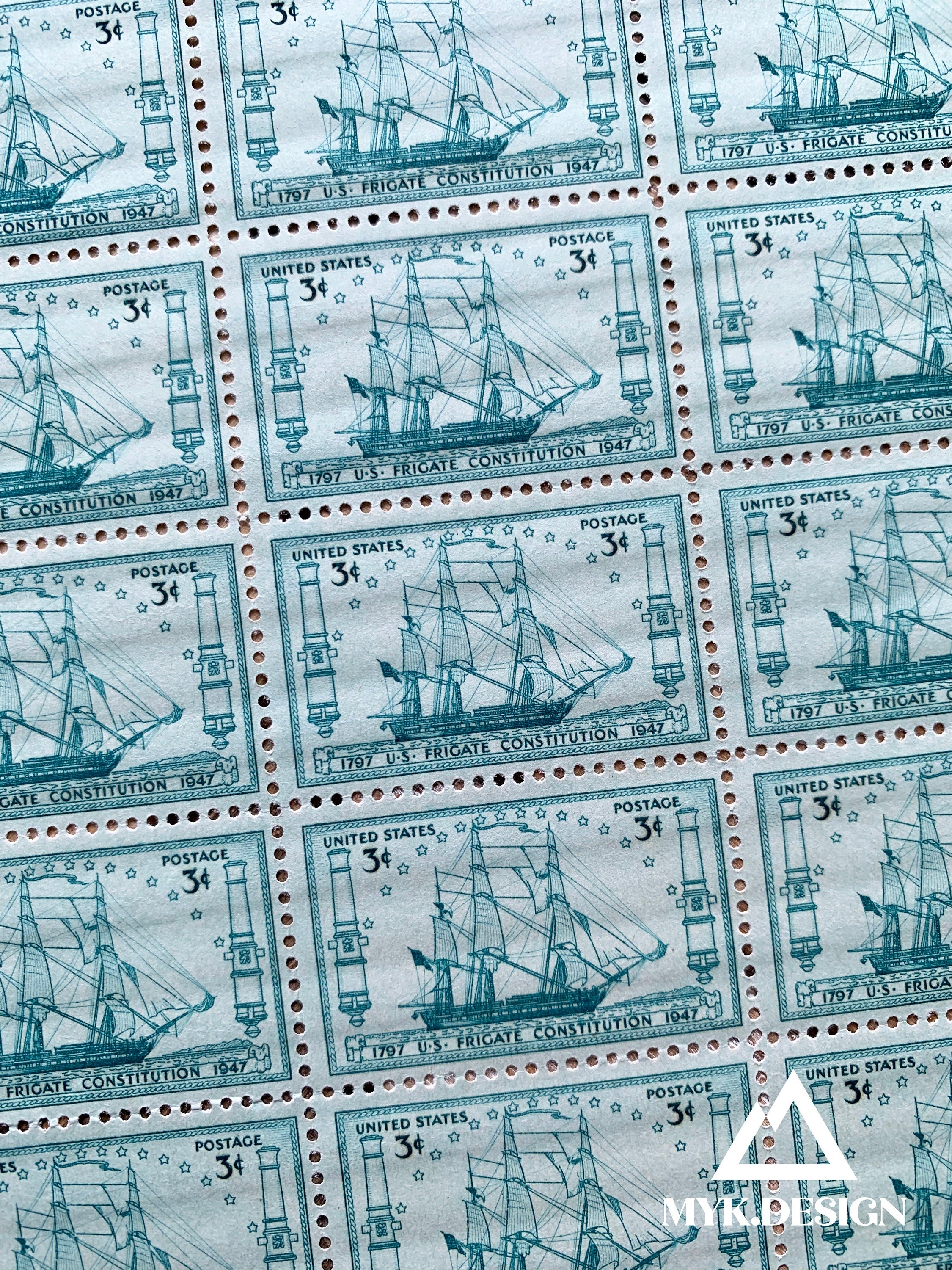 US Frigate Constitution, Old Ironside, Naval Sheet of 50 U.S. Postage Stamps | Face Value 3 Cents | 1947 | Scott 951