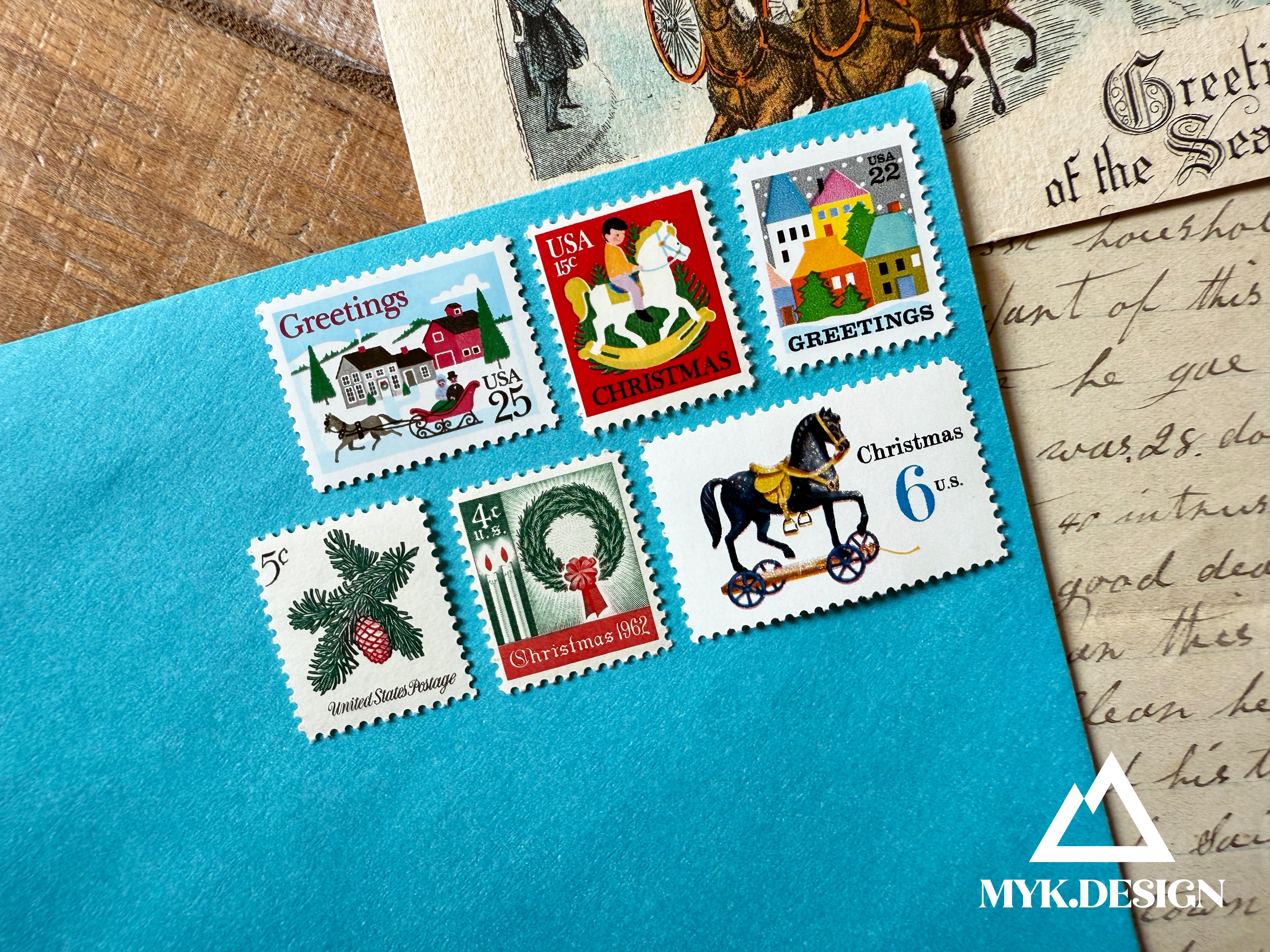 Vintage Christmas Postage Set of Six Stamps | 78 cents postage for cards, letters