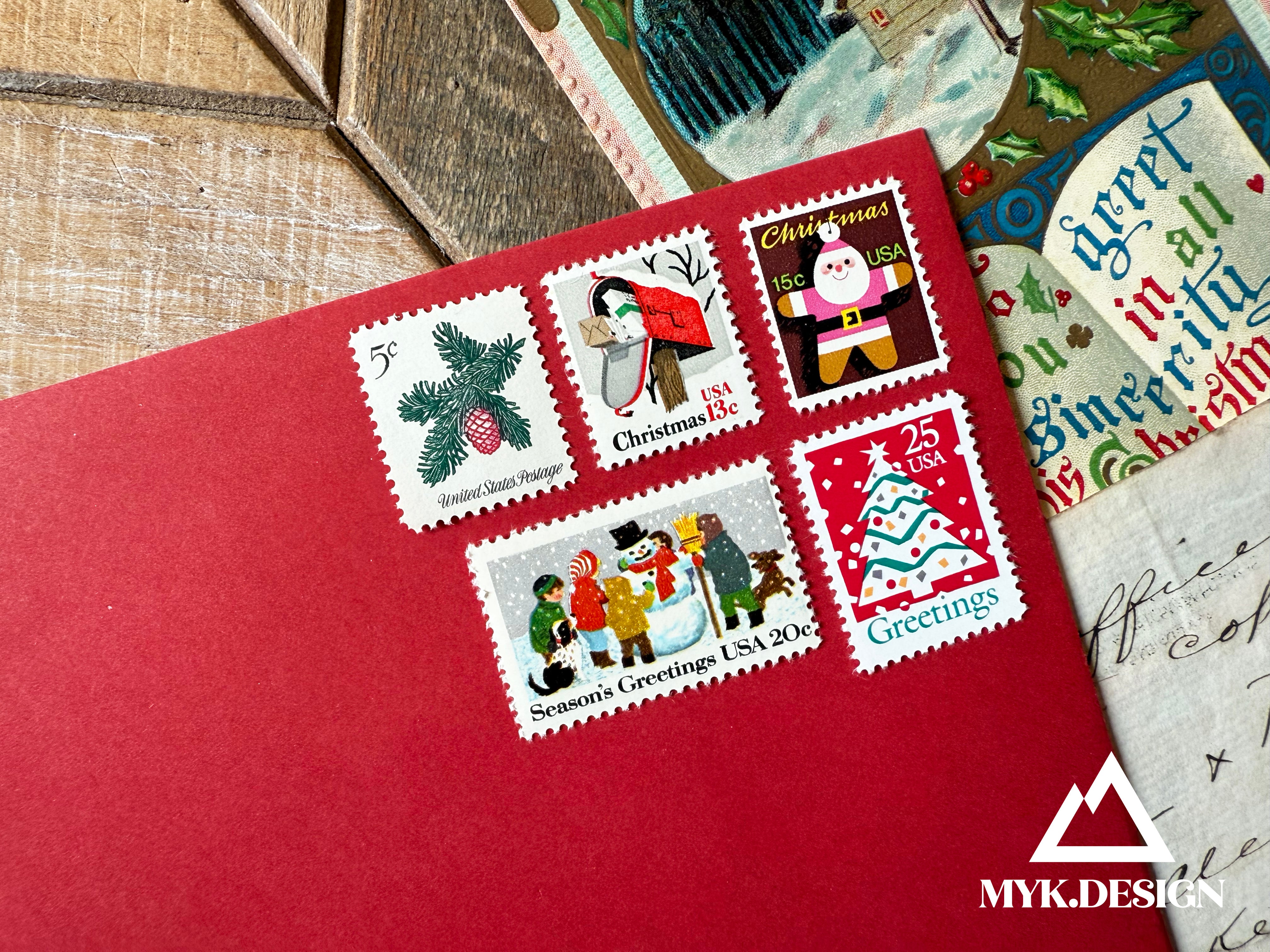 Vintage Christmas Postage Set of Five Stamps | 78 cents postage for cards, letters