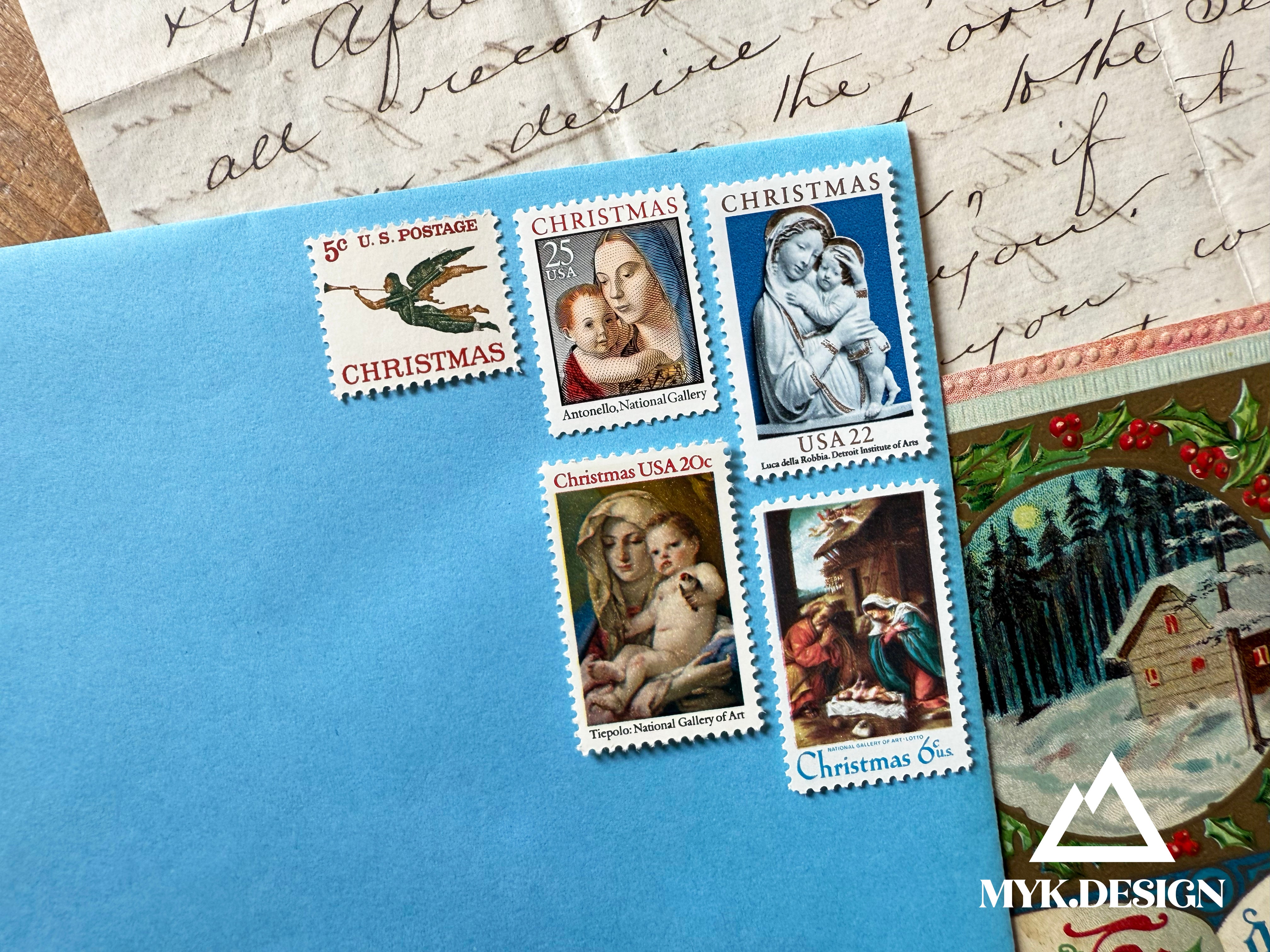 Vintage Christmas Postage Set of Five Stamps | 78 cents postage for cards, letters
