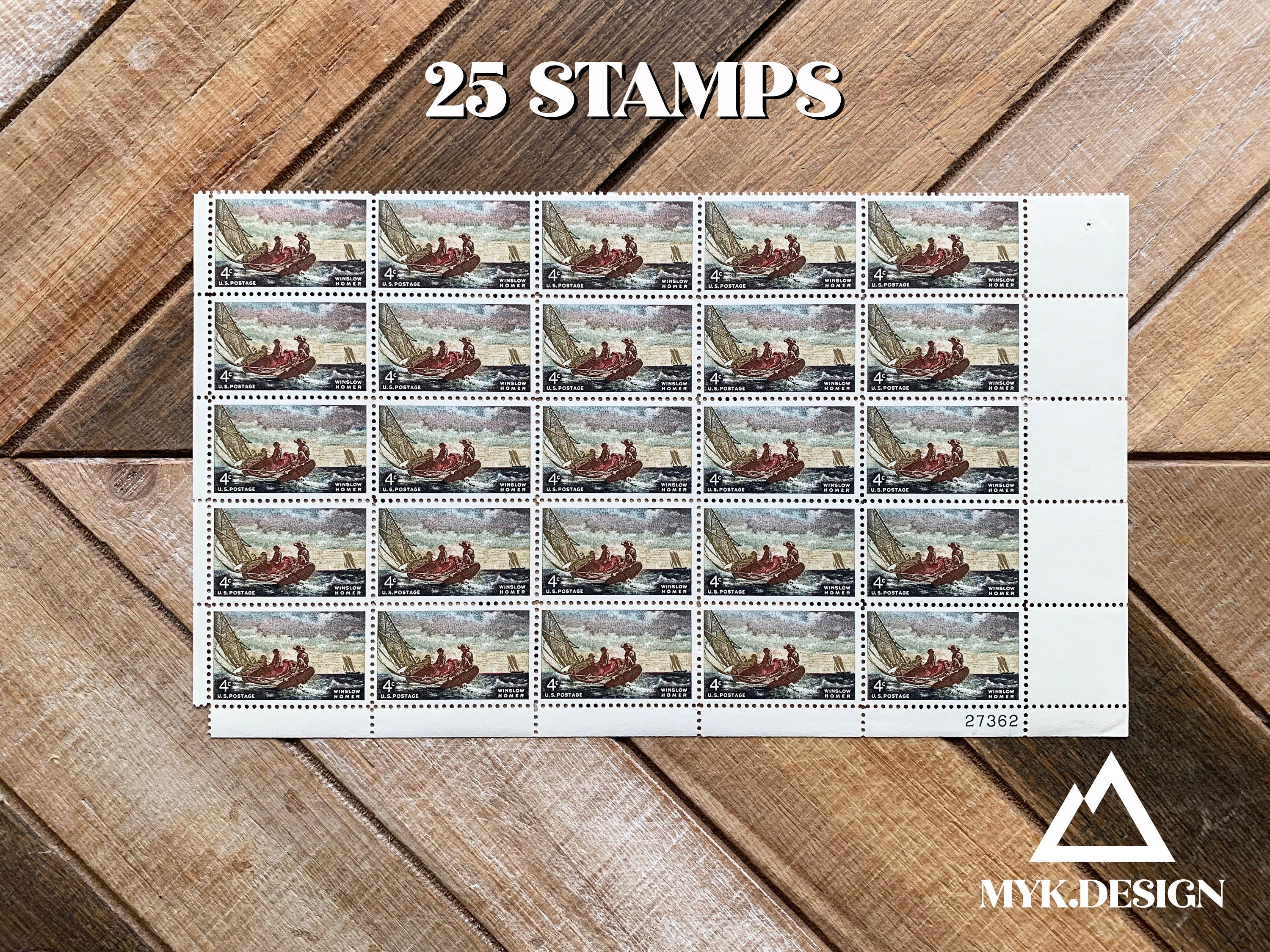 Shipping Info: We ship our stamps, stickers, and other flat items in a sturdy, flat mailer with tracking for the best protection. Because the post office considers this a “package” and not a flexible envelope, the cost of shipping is subject to package prices. This is the best way to protect your purchase.