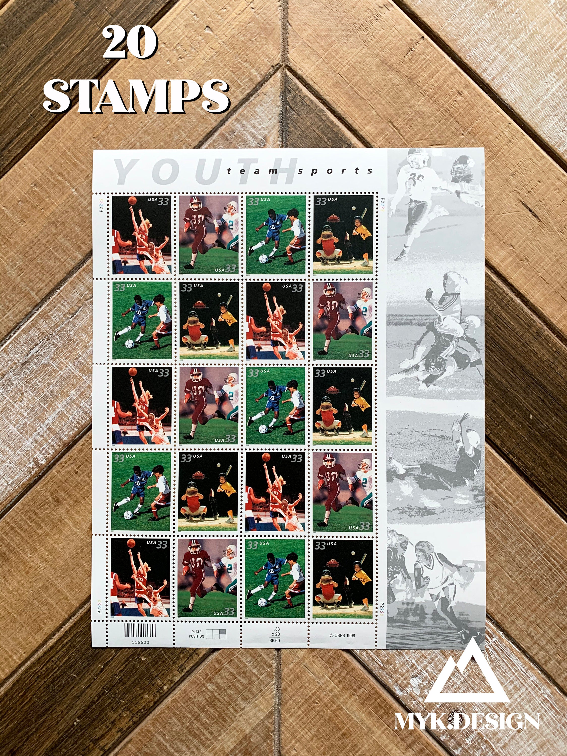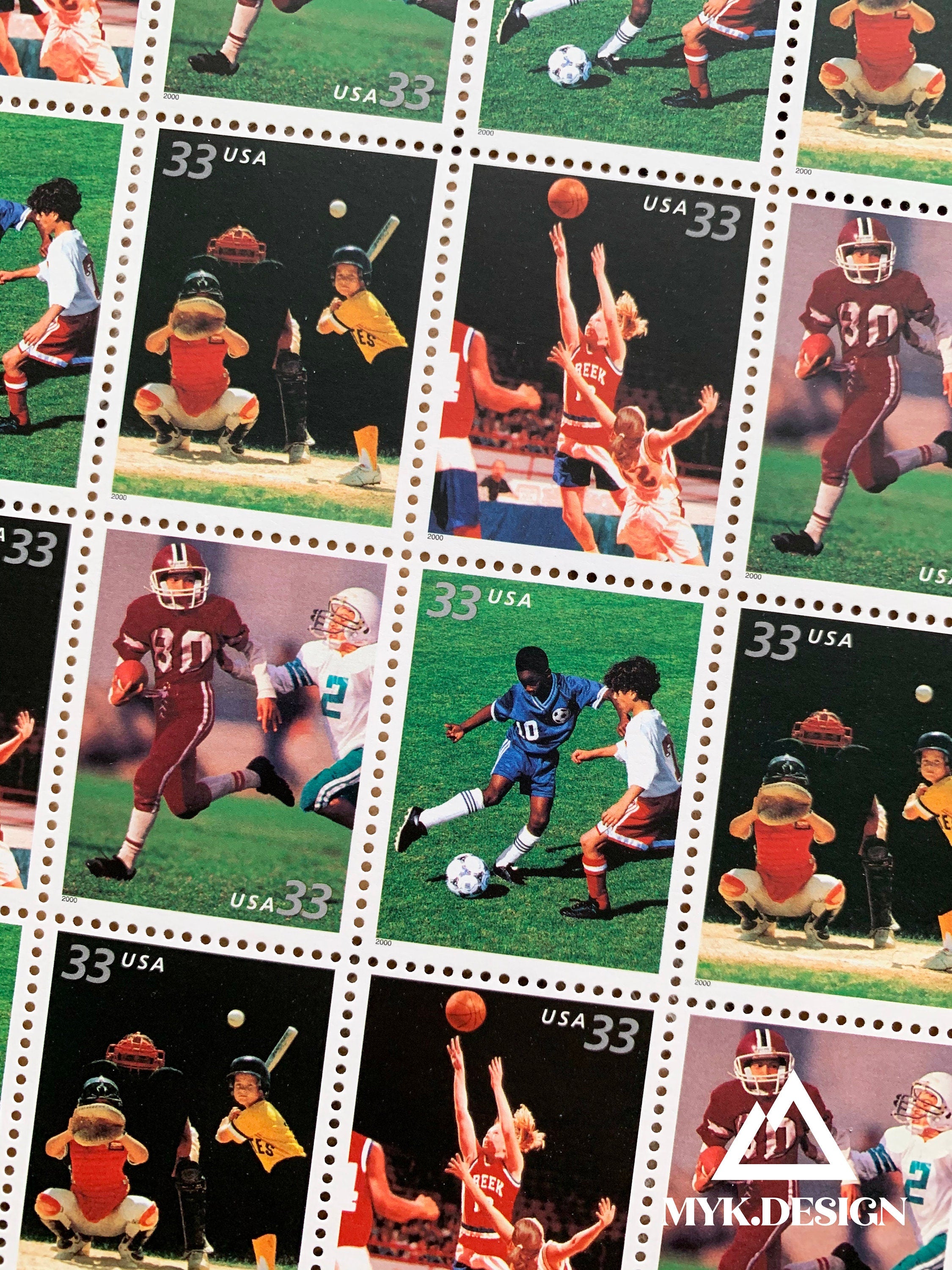 Youth Team Sports | Sheet of 20 U.S. Postage Stamps | Face Value 33 Cents | 2000 | Scott 3399-3402
